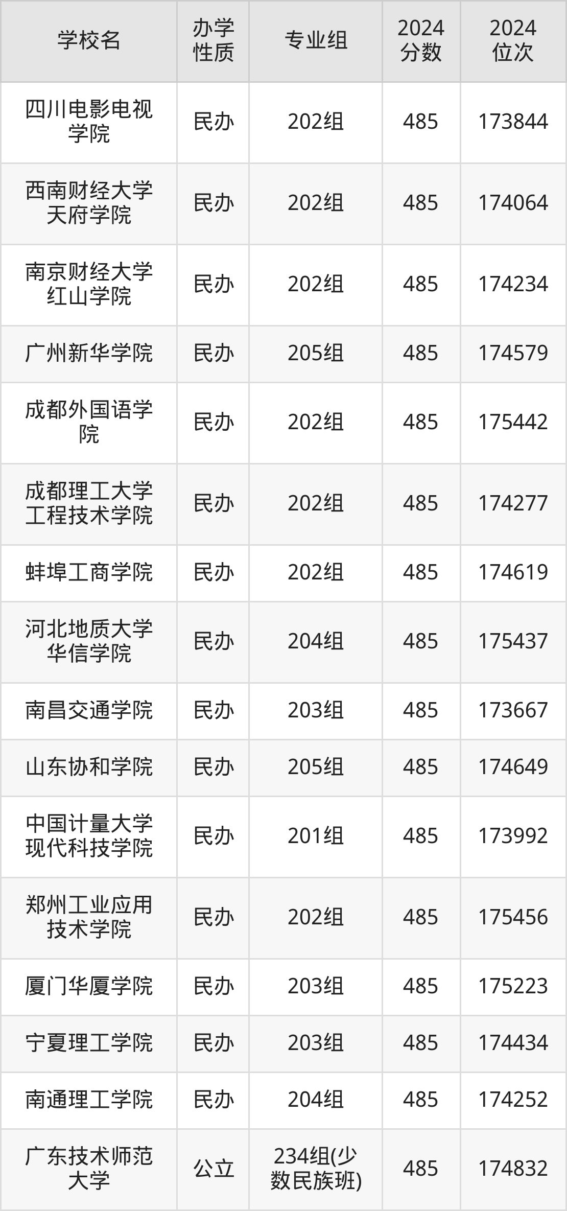 | 广东技术师范 大学 | 234组(少 数民族班) | 485 | 174832 |