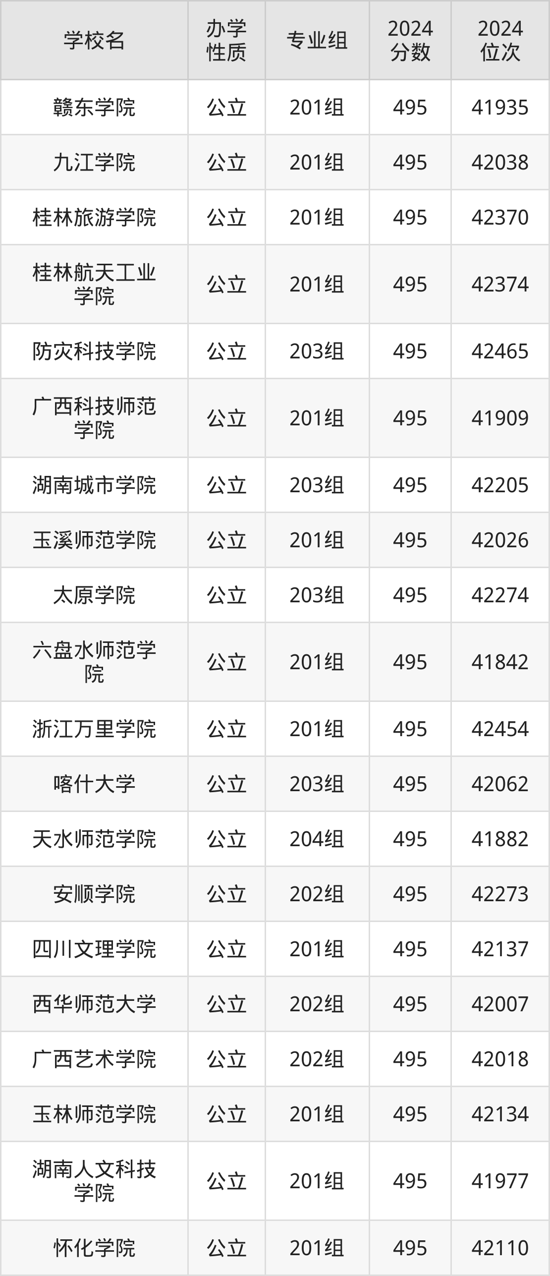 | 广西艺术学院 | 202组 | 495 | 42018 |