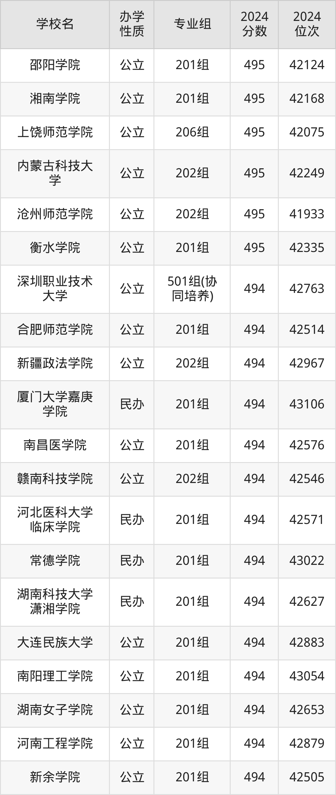 | 邵阳学院 | 201组 | 495 | 42124 |