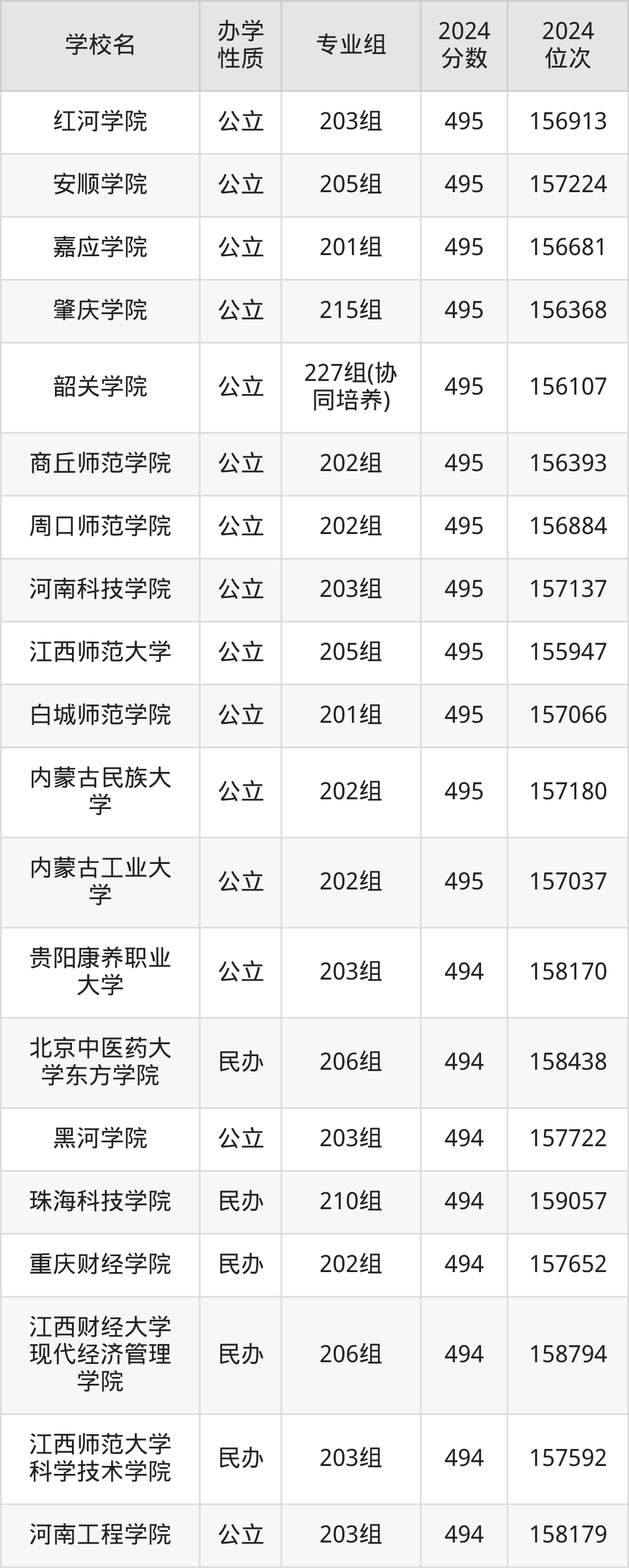 | 赣南科技学院 | 202组 | 494 | 42546 |