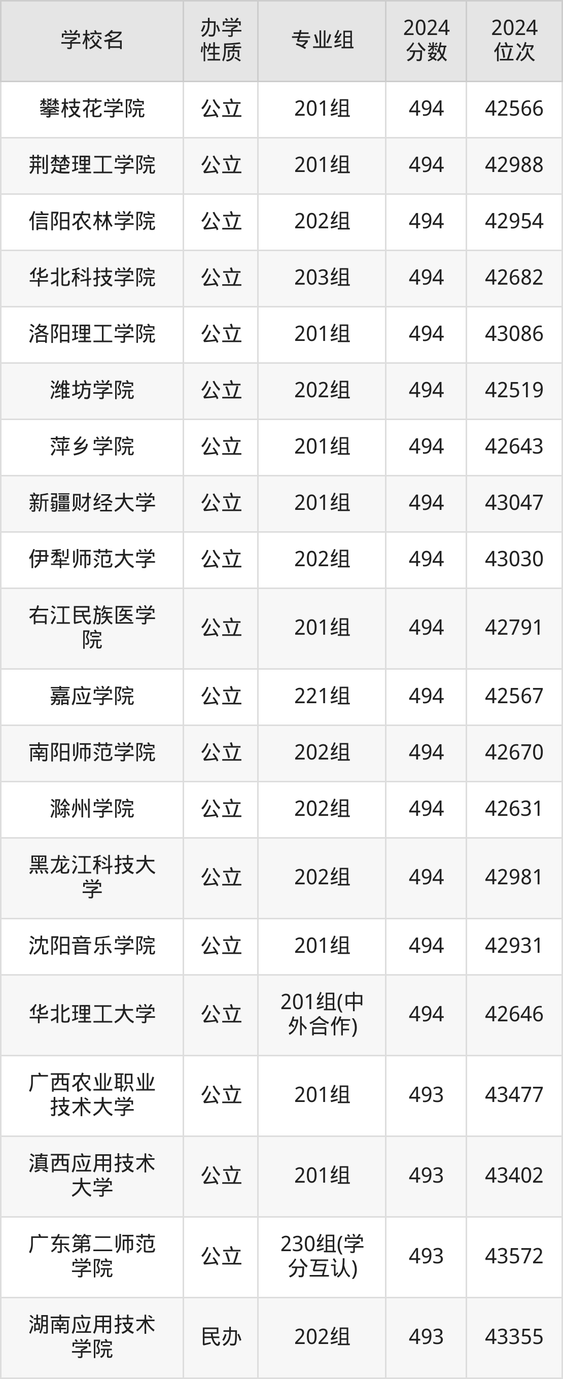 | 攀枝花学院 | 201组 | 494 | 42566 |