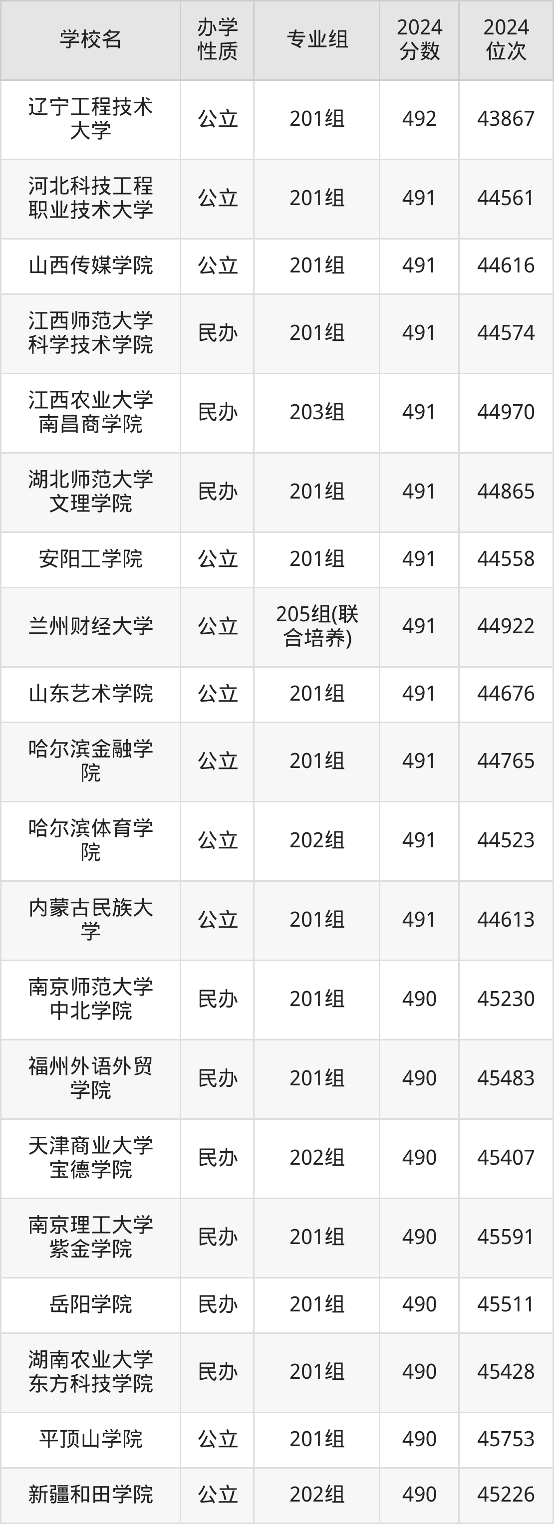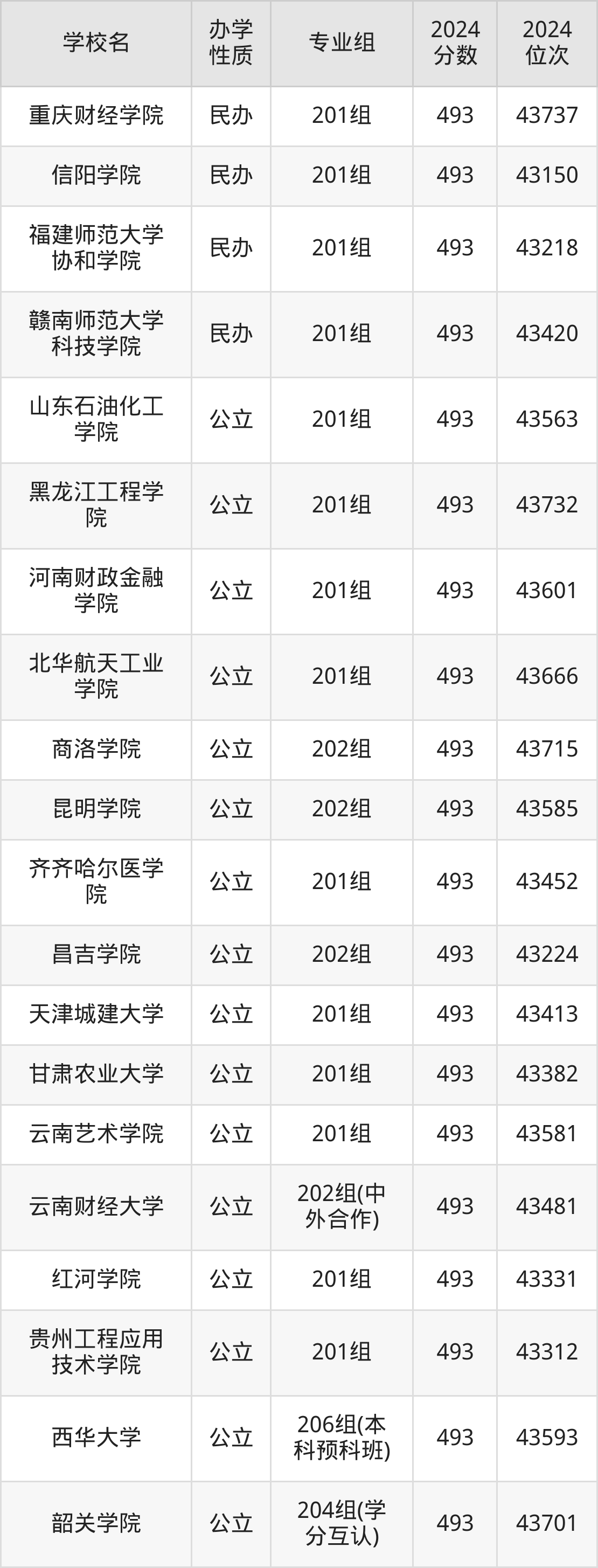 | 云南财经大学 | 202组(中 外合作) | 493 | 43481 |