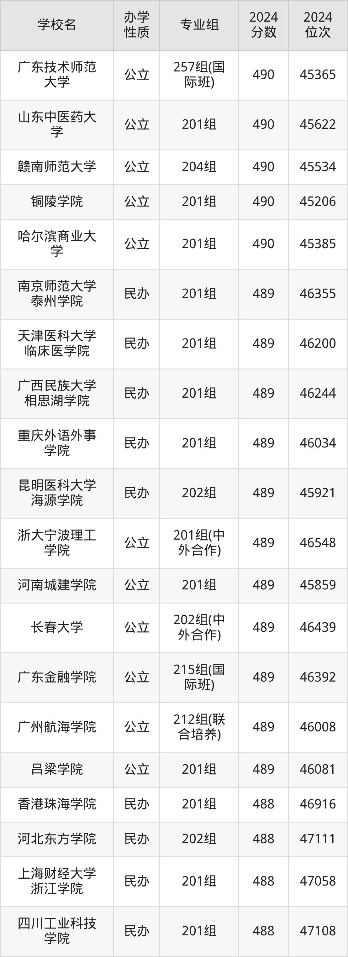 为了方便2025届考生了解自己能上哪些大学,本文也整理出了广东490分左右能上的所有大学名单,供2025年考生参考。