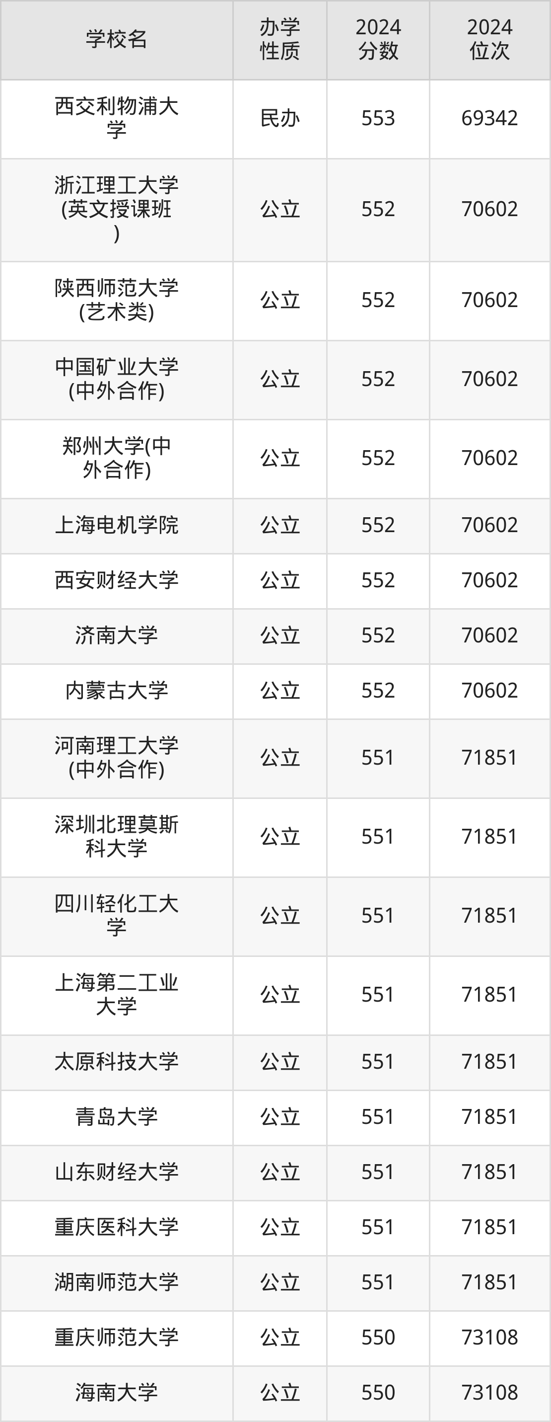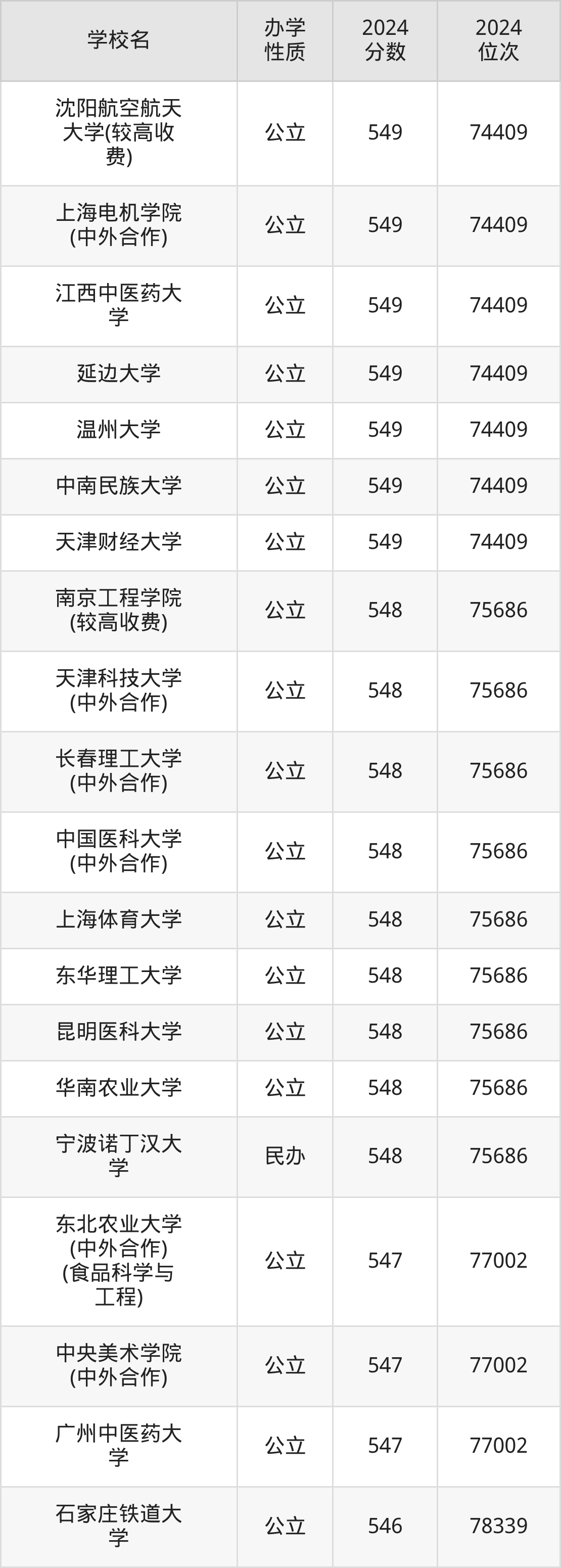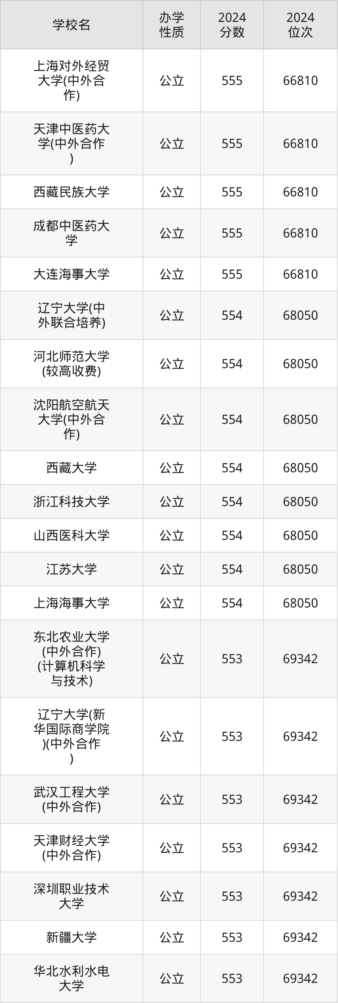 | 学校名 | 2024 分数 | 2024 位次 |