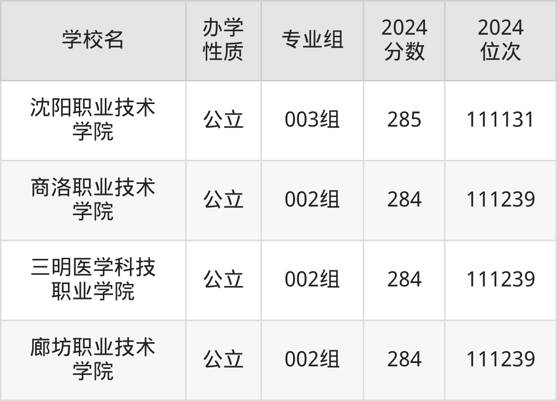 | 沈阳职业技术 学院 | 003组 | 285 | 111131 |