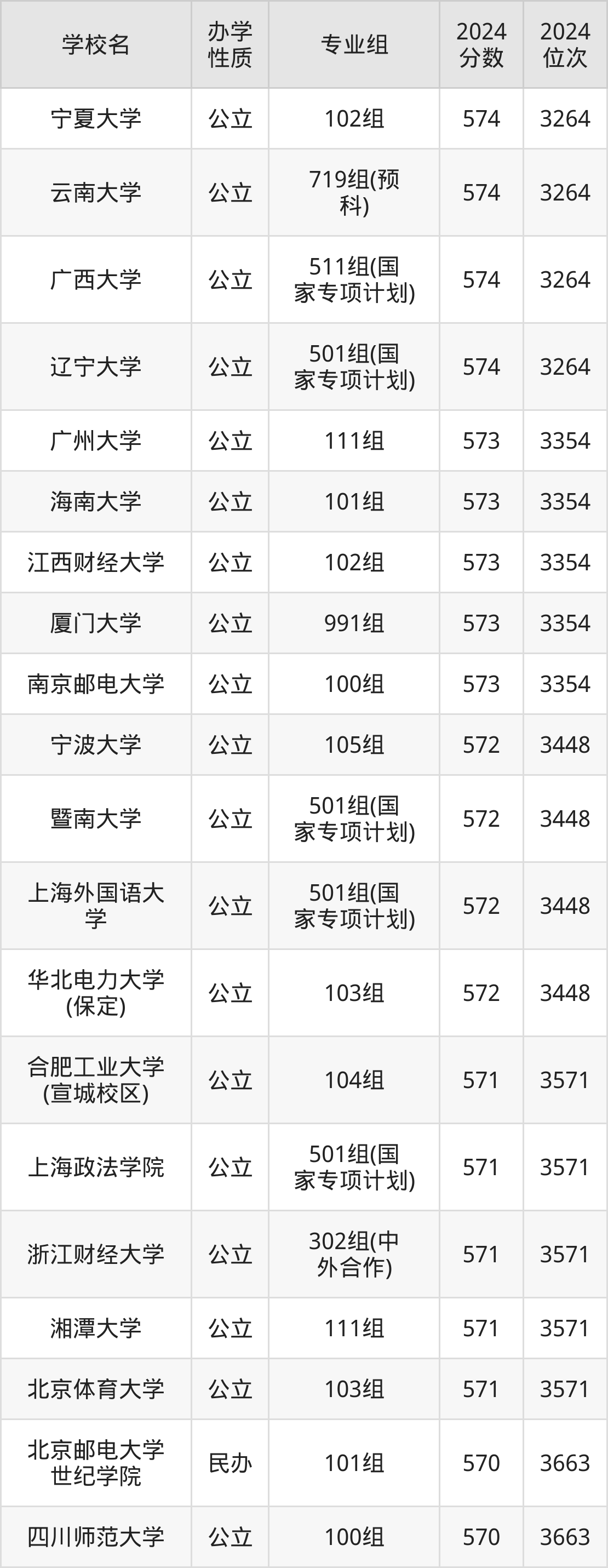 | 广西大学 | 511组(国 家专项计划) | 574 | 3264 |
