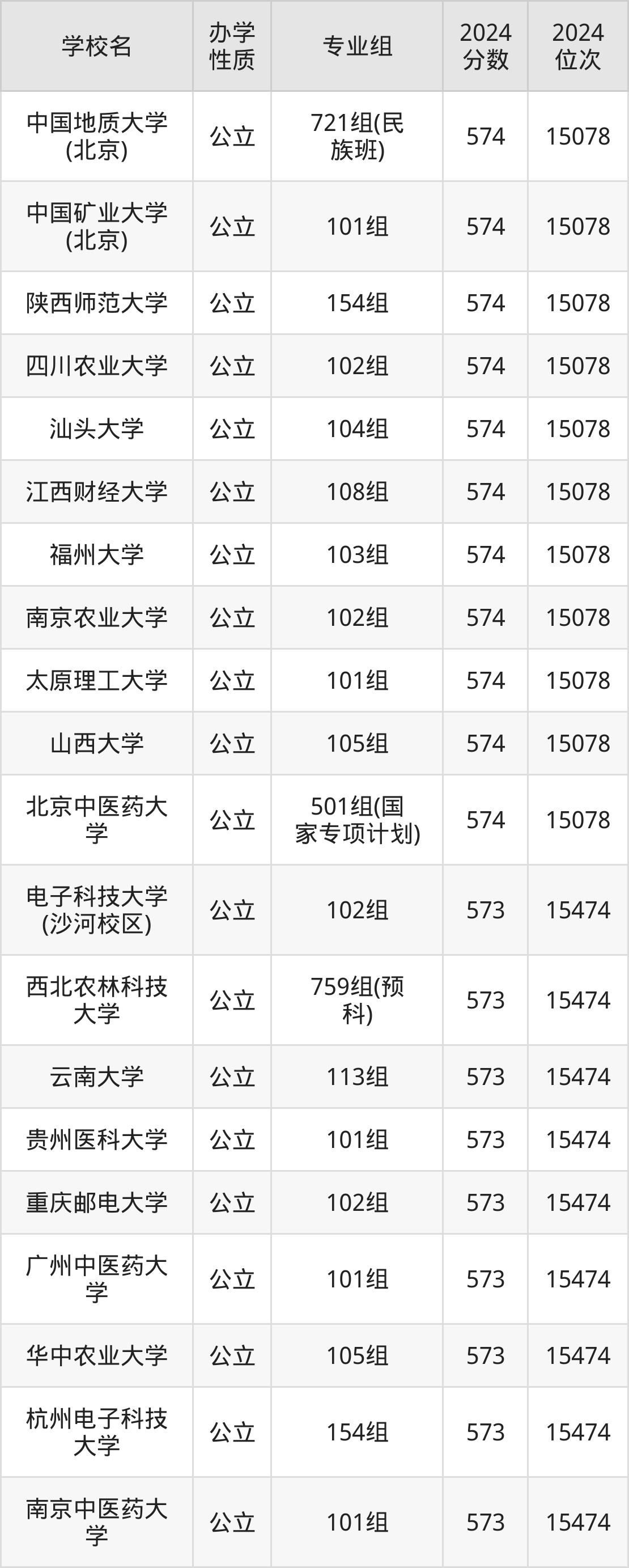 | 北京中医药大 学 | 501组(国 家专项计划) | 574 | 15078 |