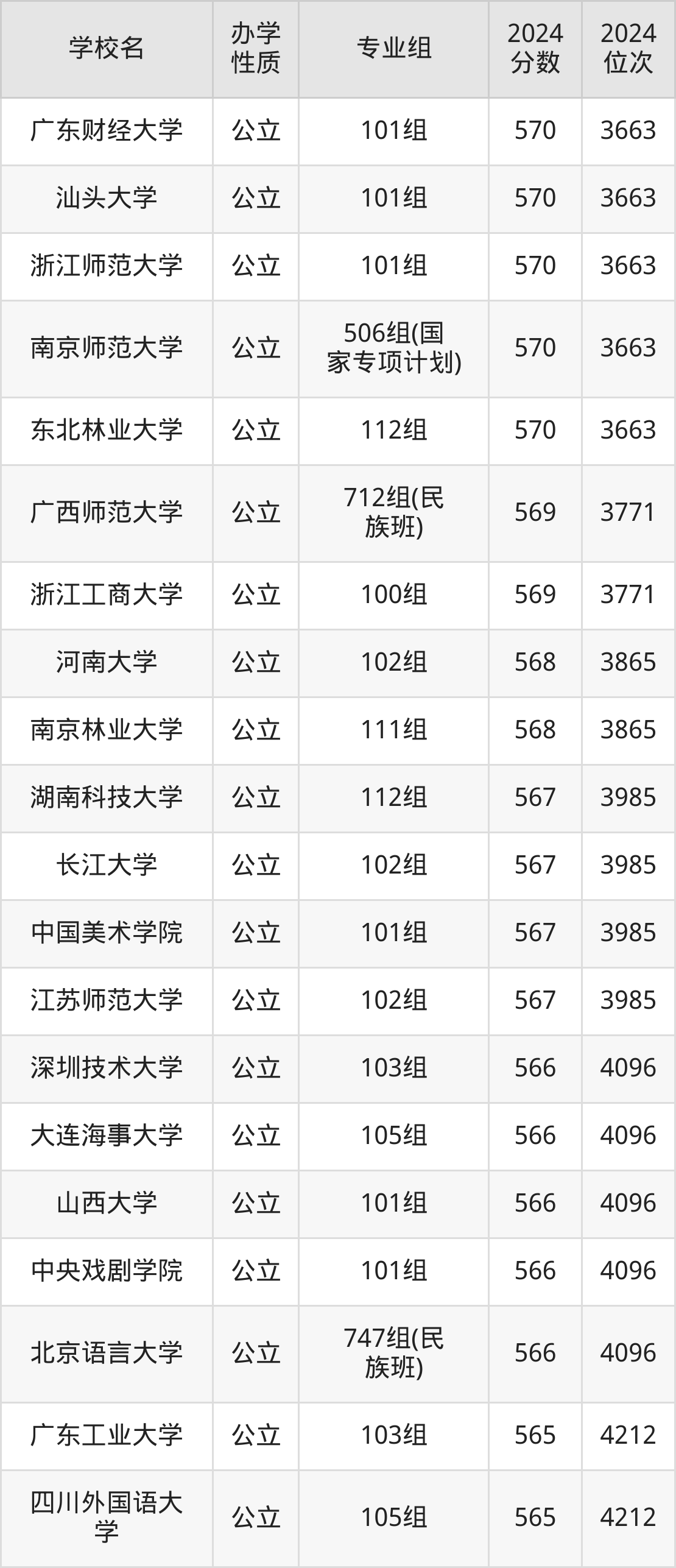 | 南京师范大学 | 506组(国 家专项计划) | 570 | 3663 |