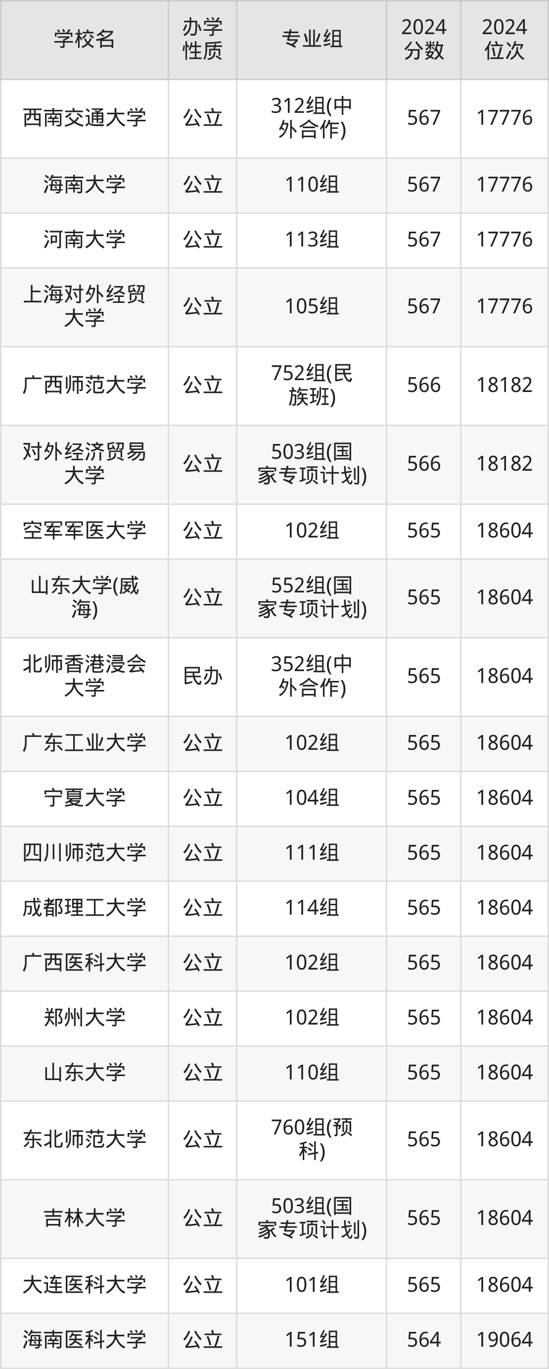 | 西南交通大学 | 312组(中 外合作) | 567 | 17776 |