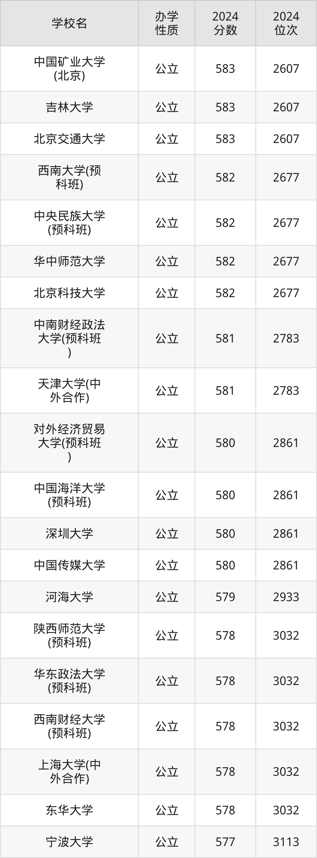 为了方便2025届考生了解自己能上哪些大学,本文也整理出了重庆578分左右能上的所有大学名单,供2025年考生参考。