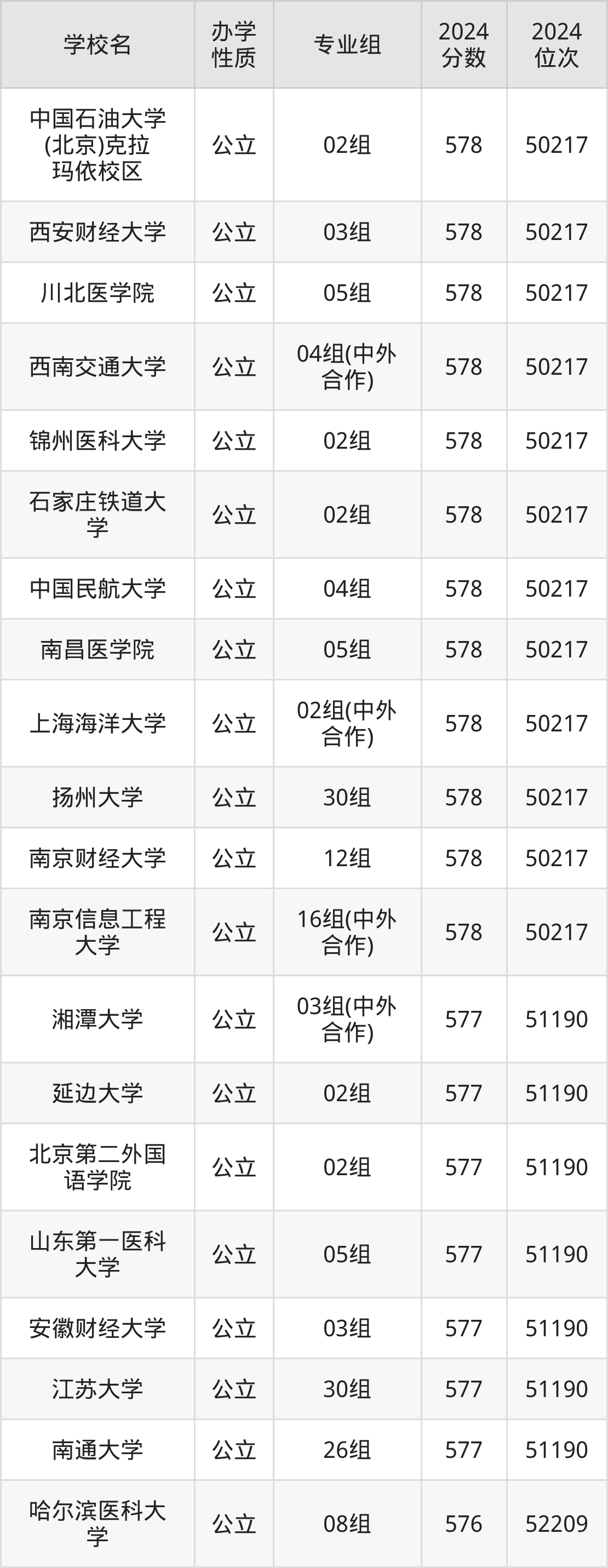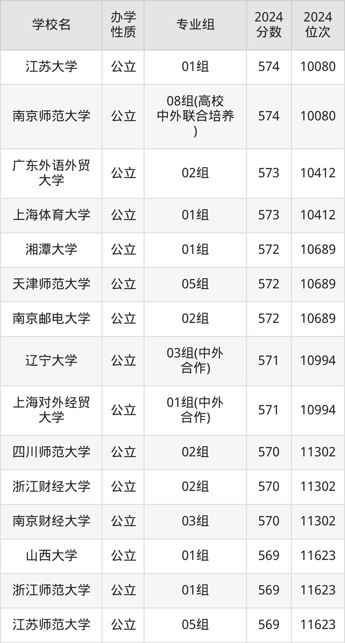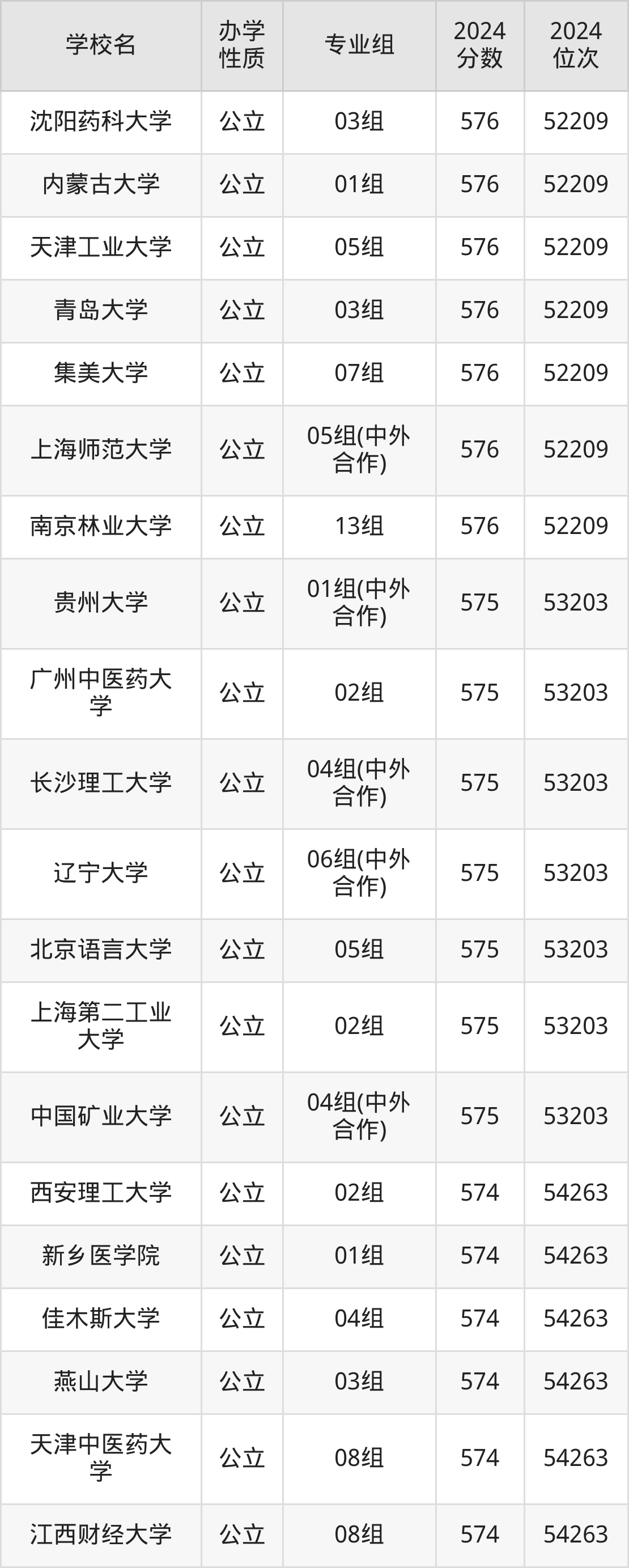 | 学校名 | 专业组 | 2024 分数 | 2024 位次 |