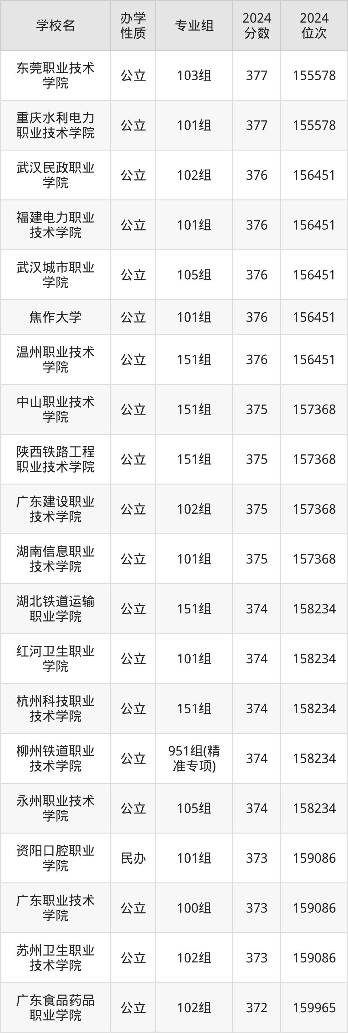 | 中山职业技术 学院 | 151组 | 375 | 157368 |
