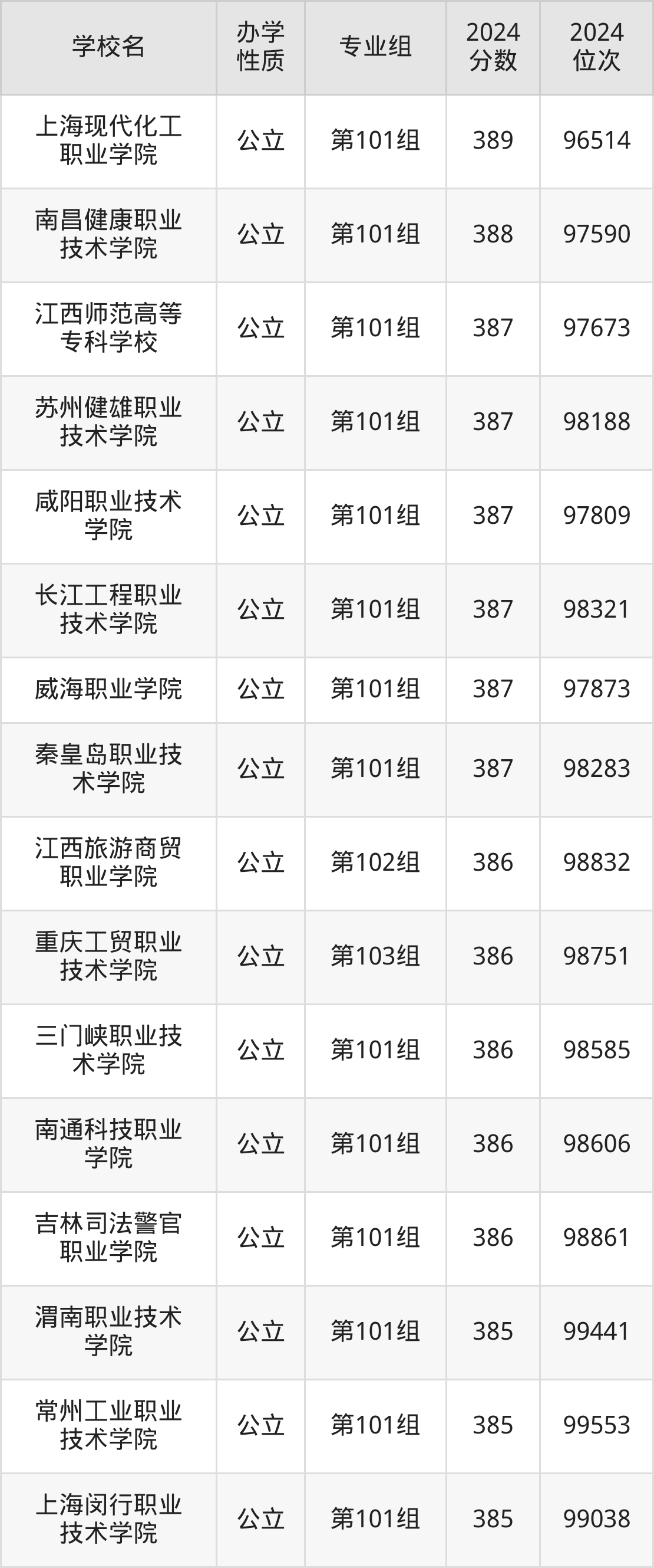 | 江西司法警官 职业学院 | 第102组 | 389 | 96535 |