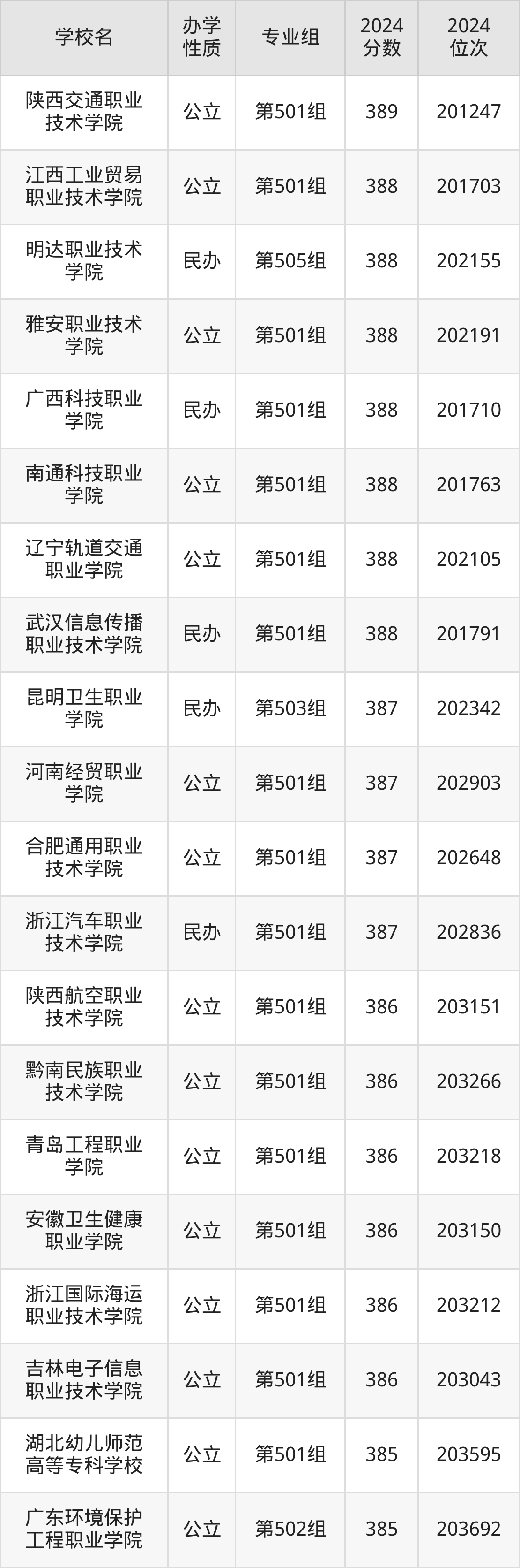 | 陕西交通职业 技术学院 | 第501组 | 389 | 201247 |