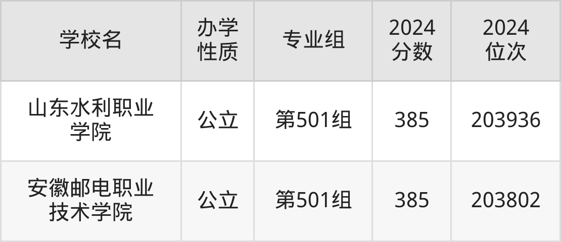 | 山东水利职业 学院 | 第501组 | 385 | 203936 |