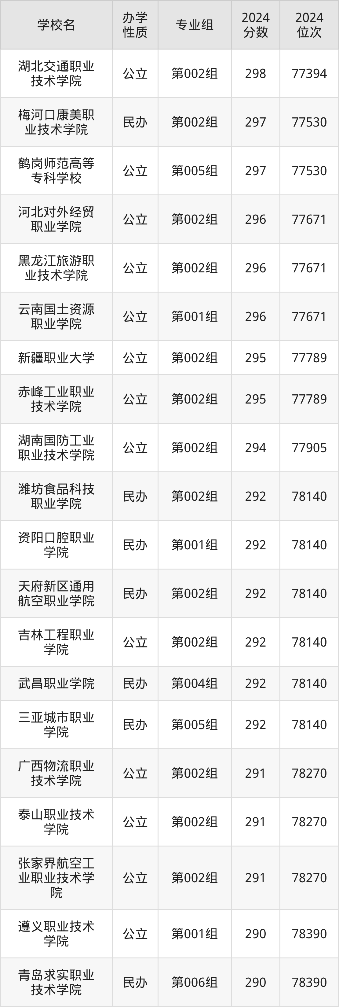 | 学校名 | 专业组 | 2024 分数 | 2024 位次 |