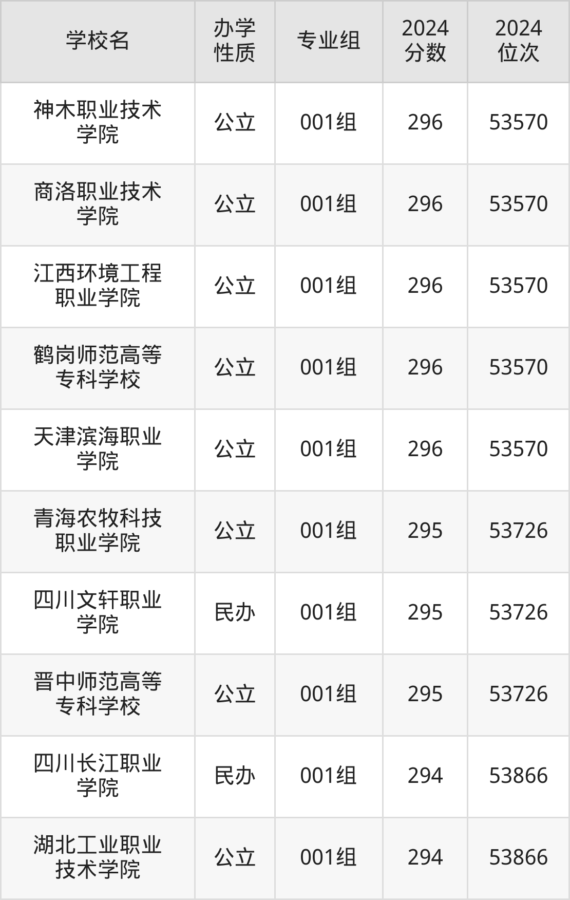 | 四川长江职业 学院 | 001组 | 294 | 53866 |