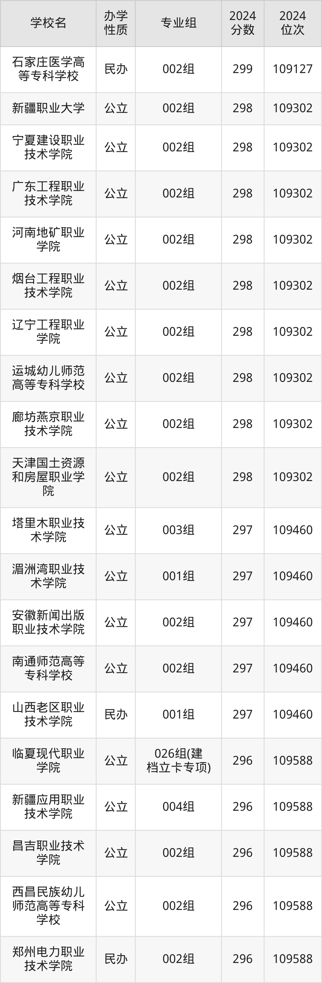 | 临夏现代职业 学院 | 026组(建 档立卡专项) | 296 | 109588 |