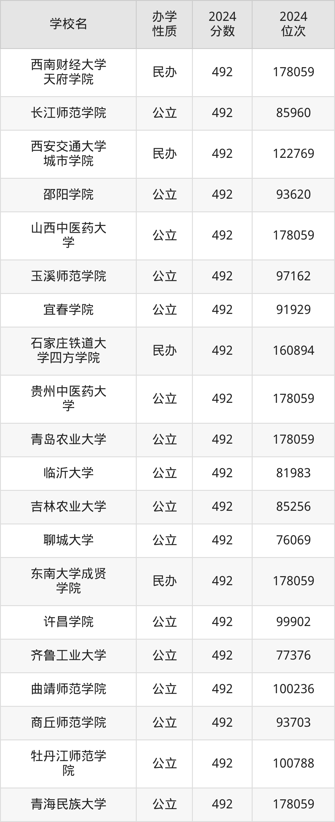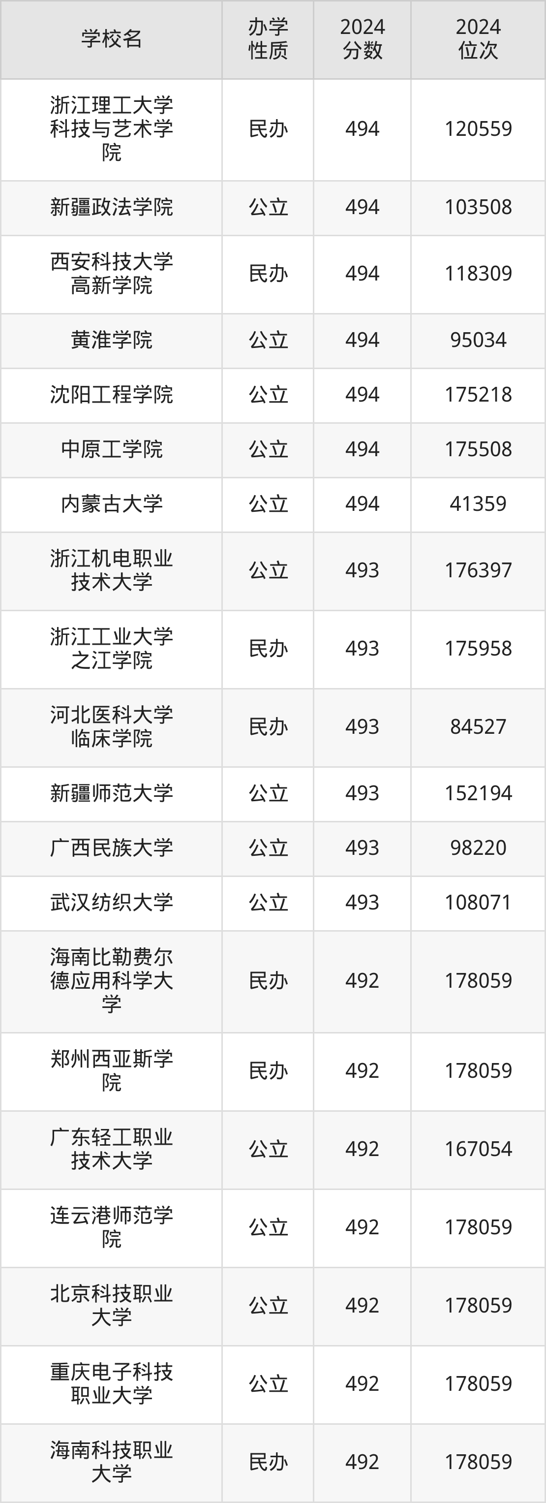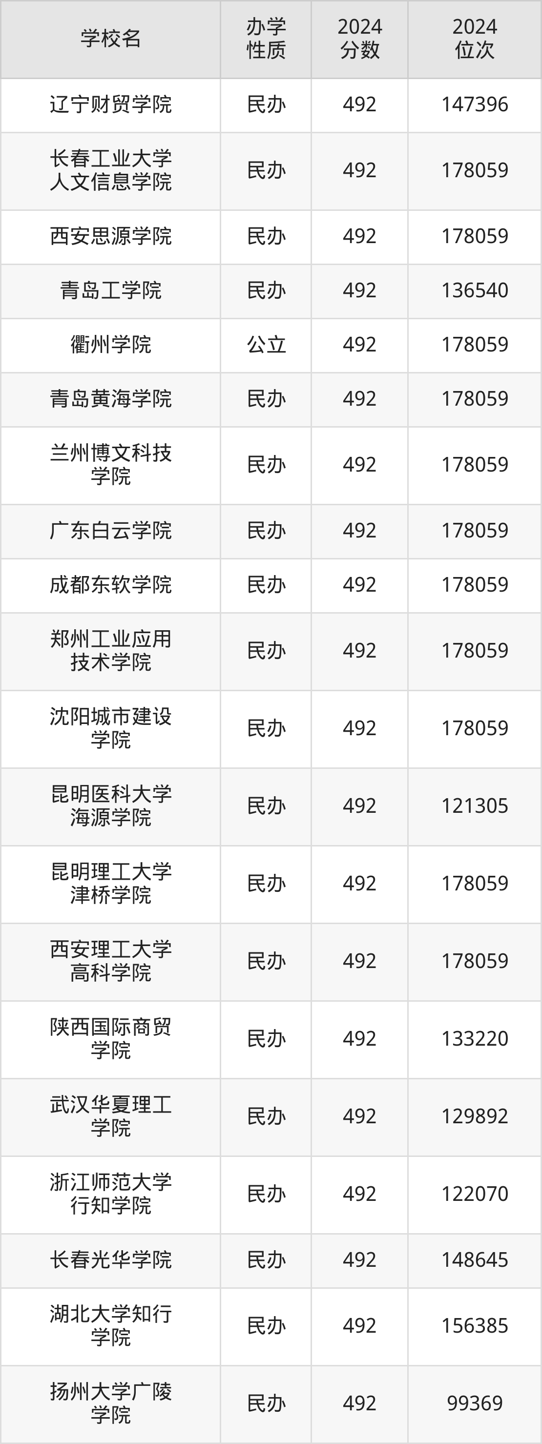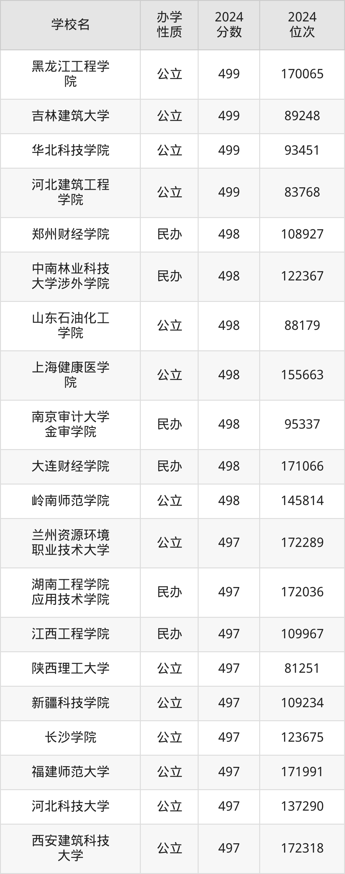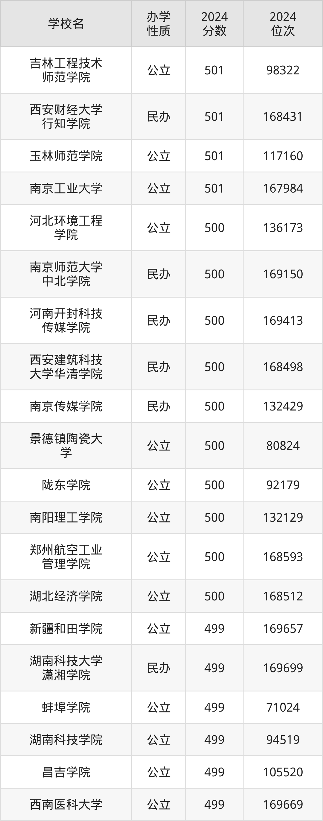 | 西安财经大学 行知学院 | 501 | 168431 |