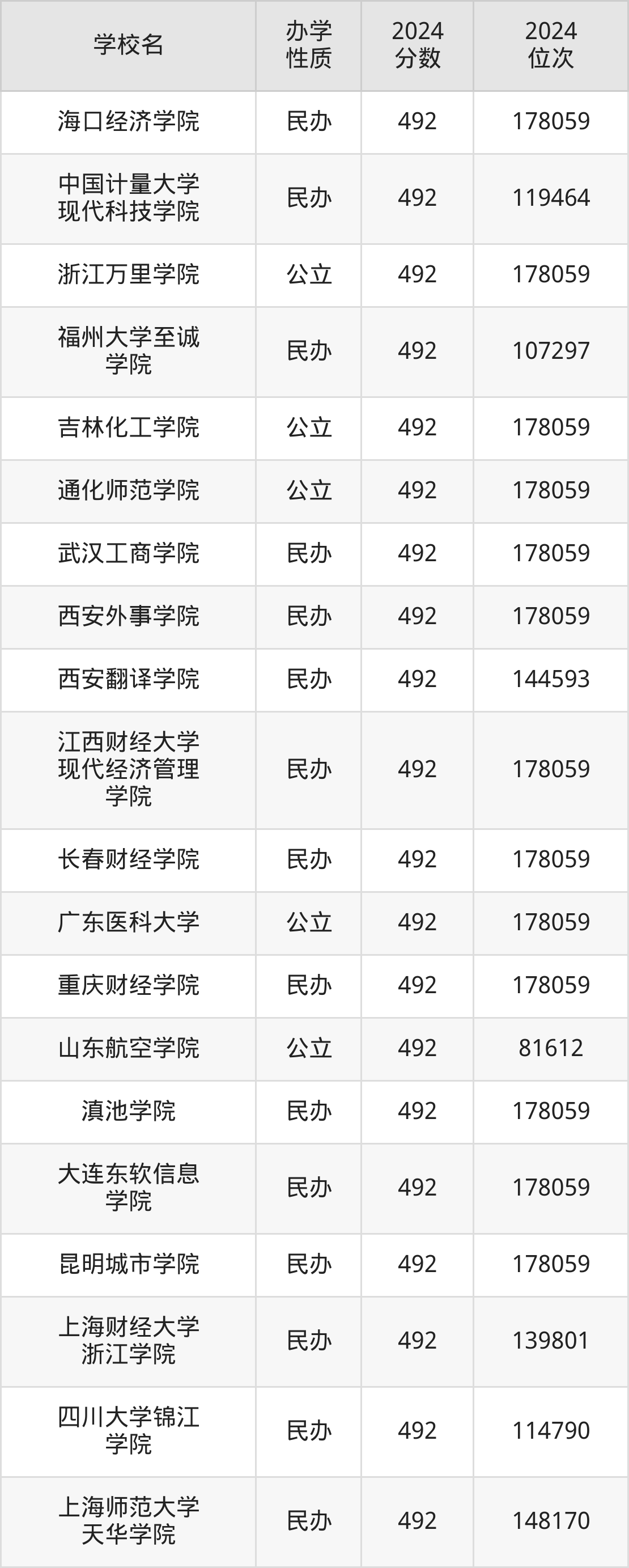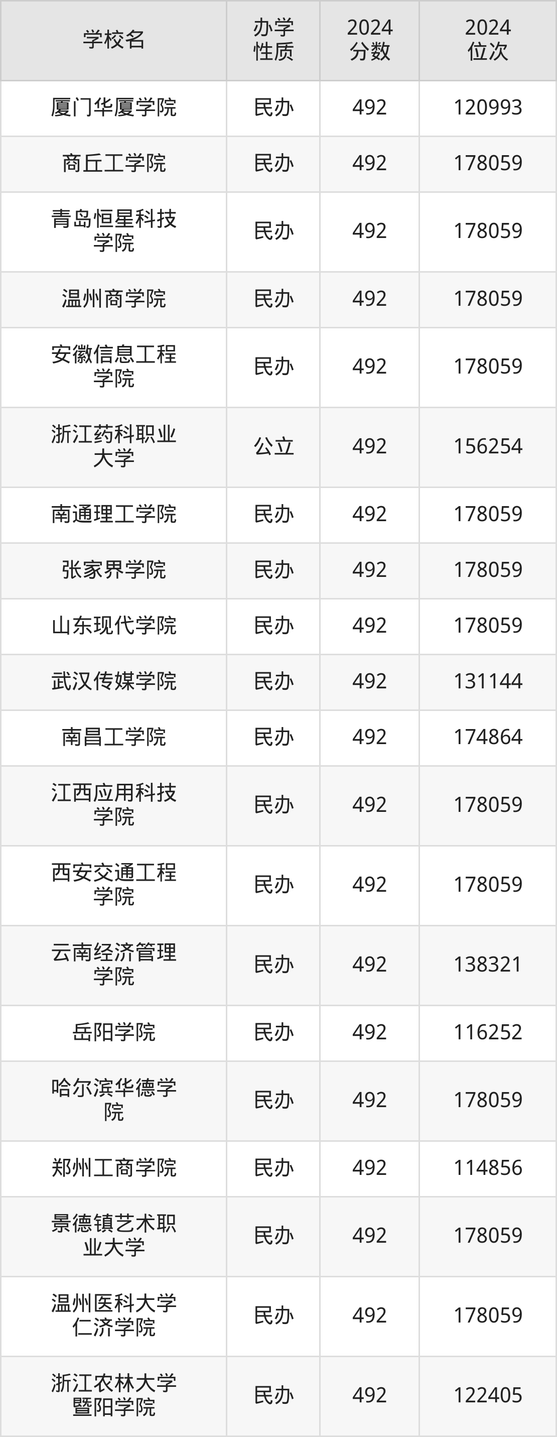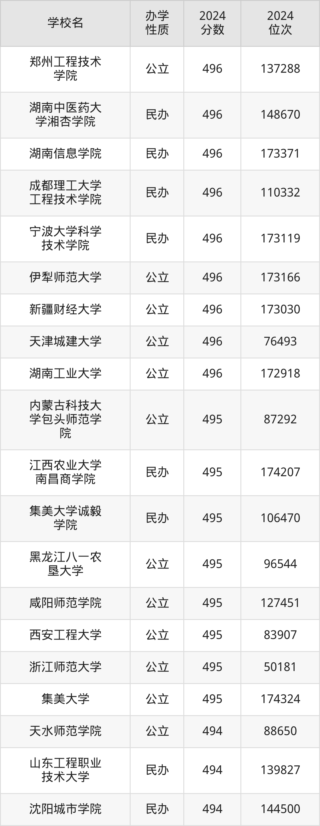 2024年浙江496分考生能上湖南铁道职业技术学院、吉林工程技术师范学院、西安财经大学行知学院、玉林师范学院、南京工业大学等701所二本院校,具体录取分数线及位次为: