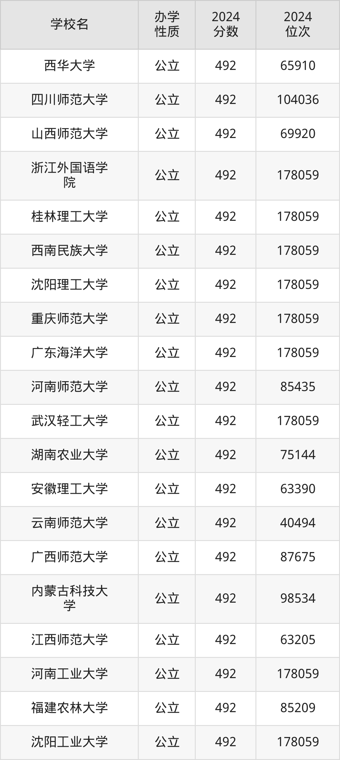 | 中南林业科技 大学涉外学院 | 498 | 122367 |