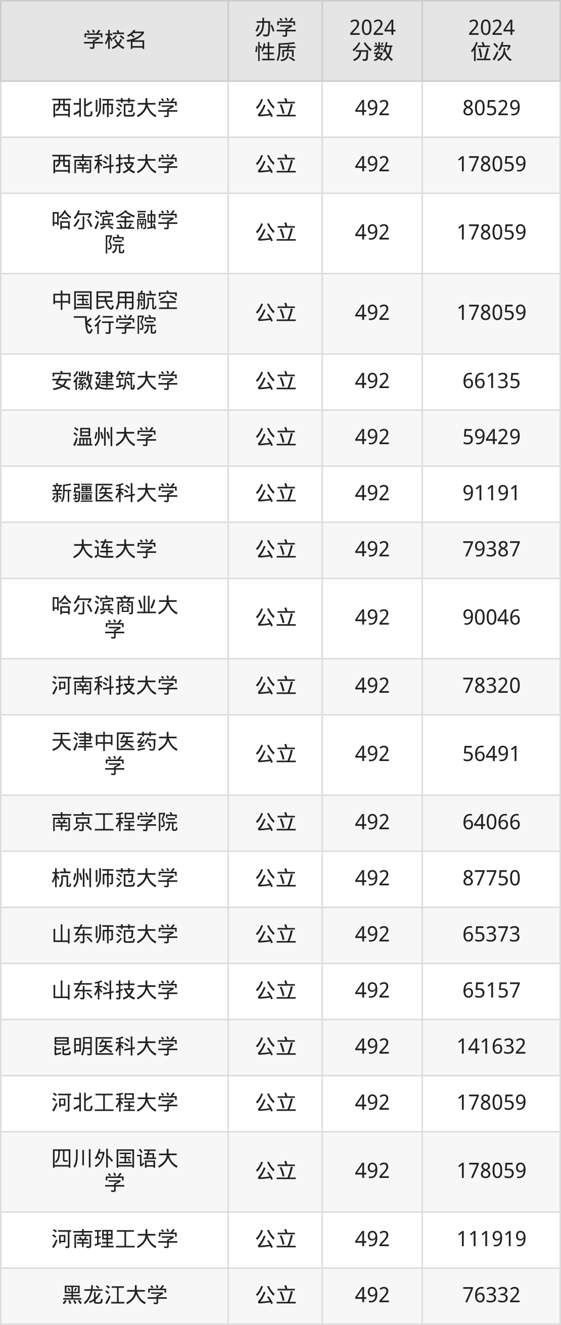 | 哈尔滨商业大 学 | 492 | 90046 |