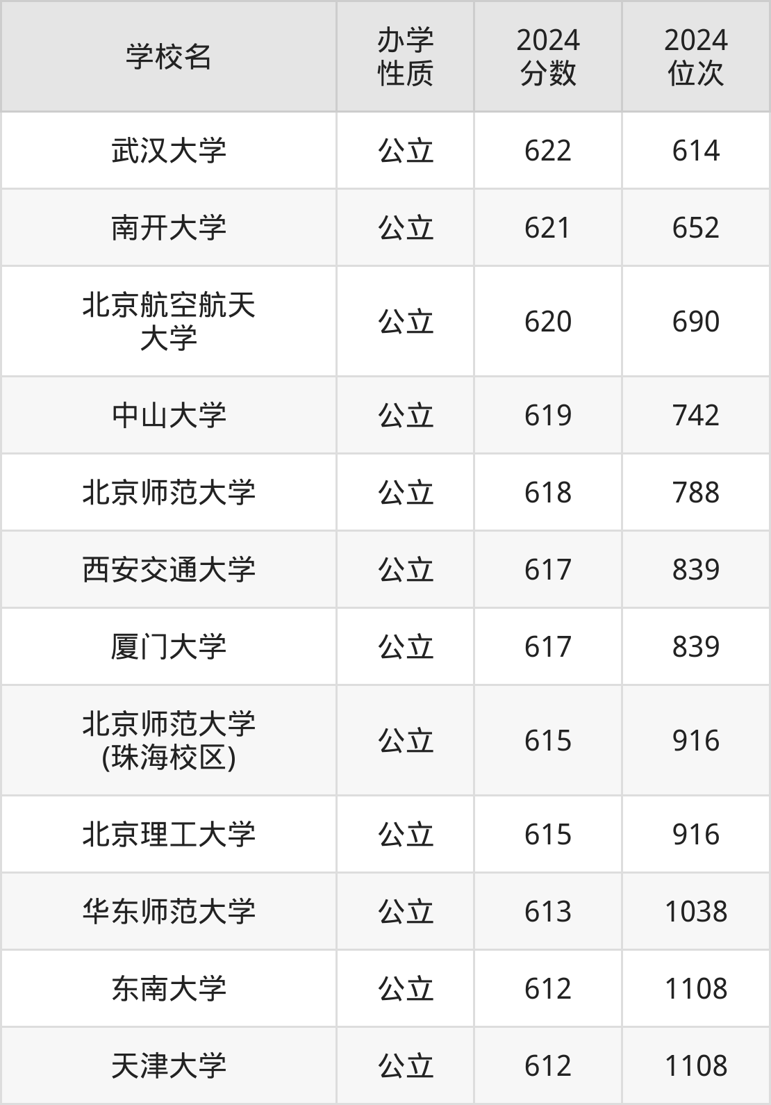 根据2024年河南的录取数据来看,617分的考生可以上东南大学、天津大学、华东师范大学等985大学,不过理科和文科的院校名单有所不同,本文就分科类整理出河南617分能上的985大学名单。