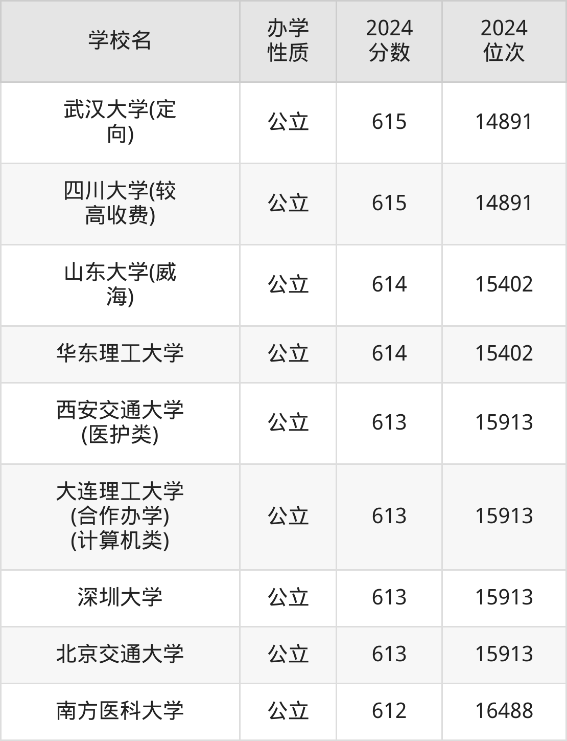 2024年河南理科617分考生能上山东大学、中南大学、东北大学、兰州大学、湖南大学等8所985院校,具体录取分数线及位次为: