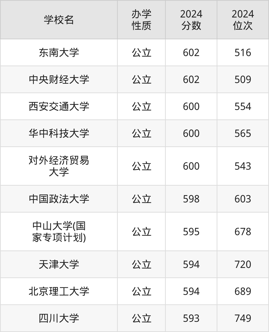 陕西597分左右的考生可以上东南大学、中央财经大学、西安交通大学等院校。