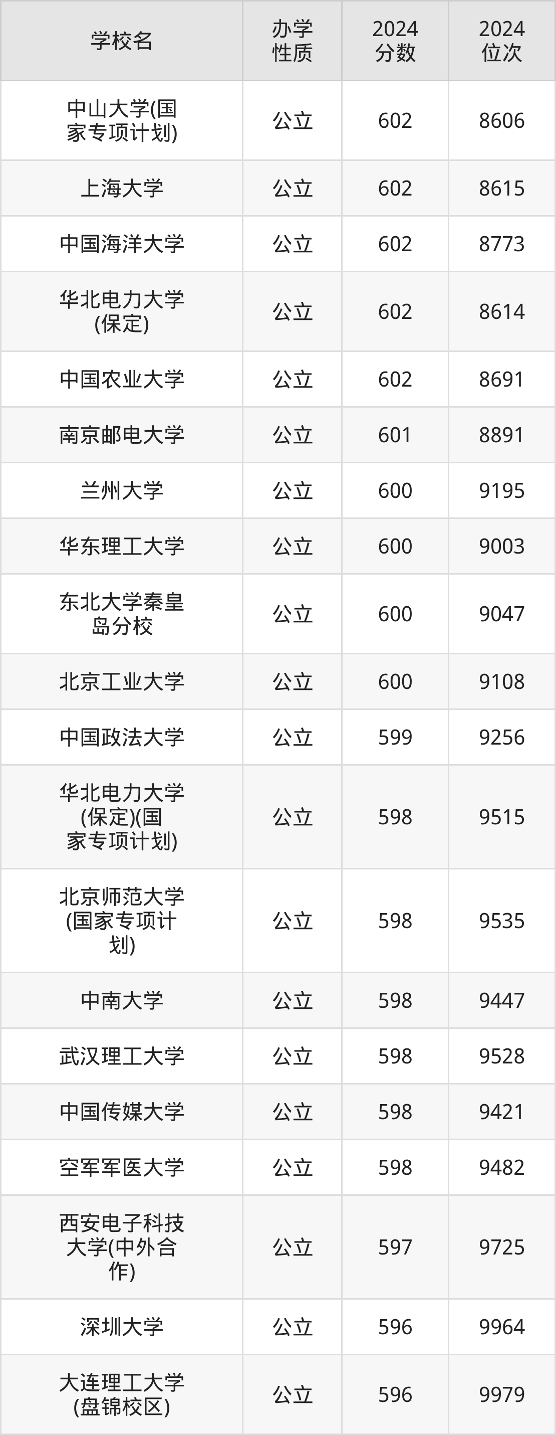 为了方便2025届考生了解自己能上哪些大学,本文也整理出了陕西597分左右能上的所有大学名单,供2025年考生参考。