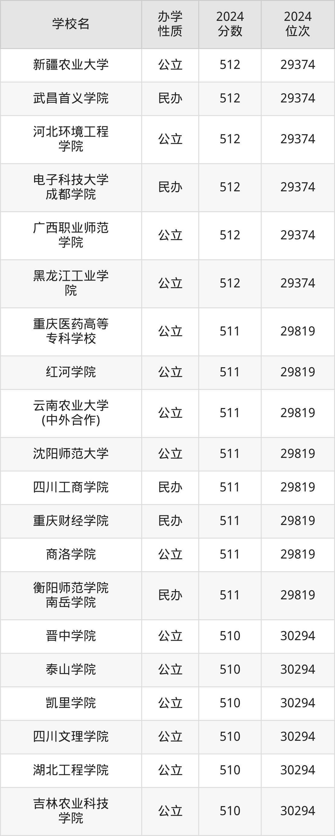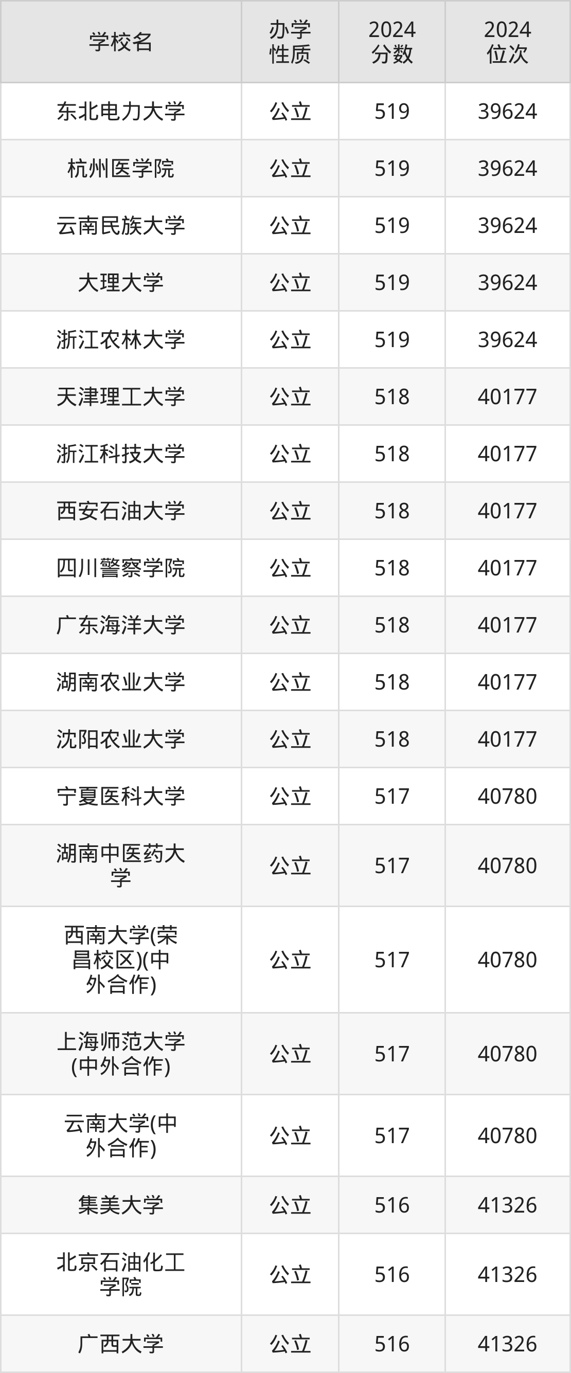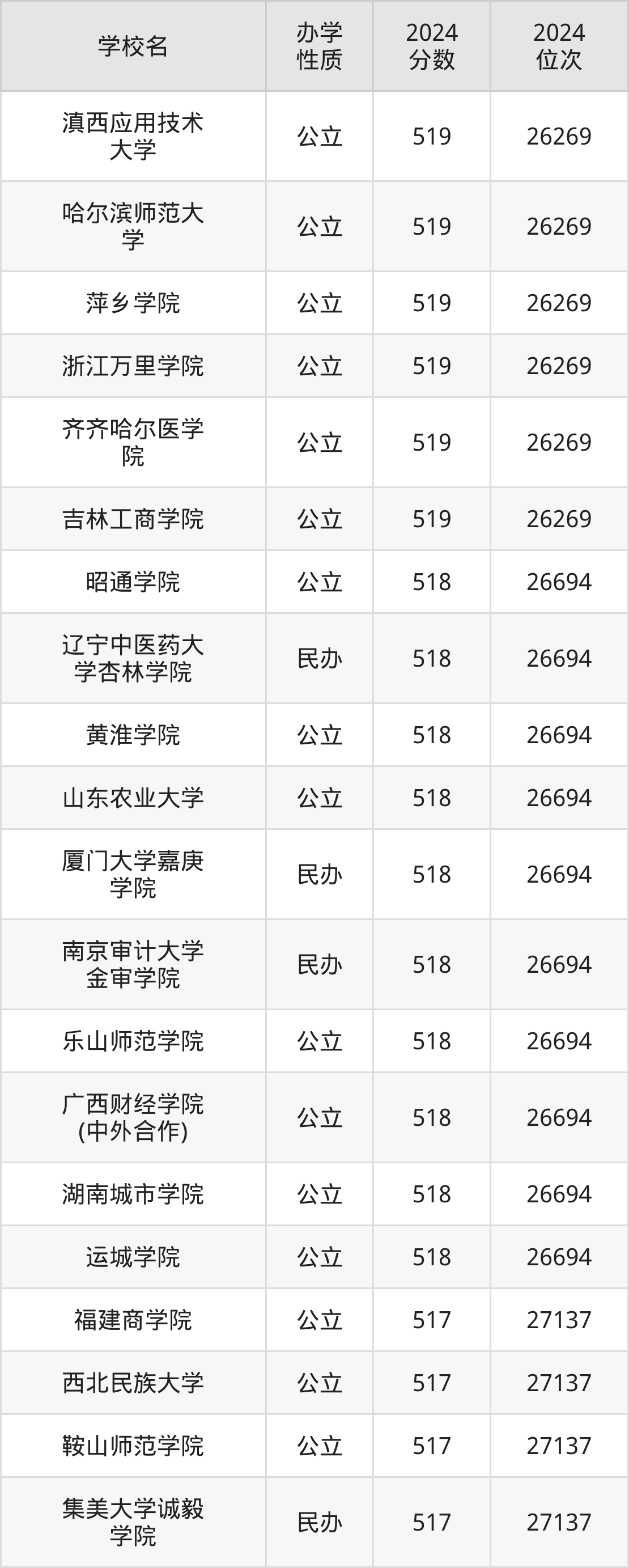 | 学校名 | 2024 分数 | 2024 位次 |