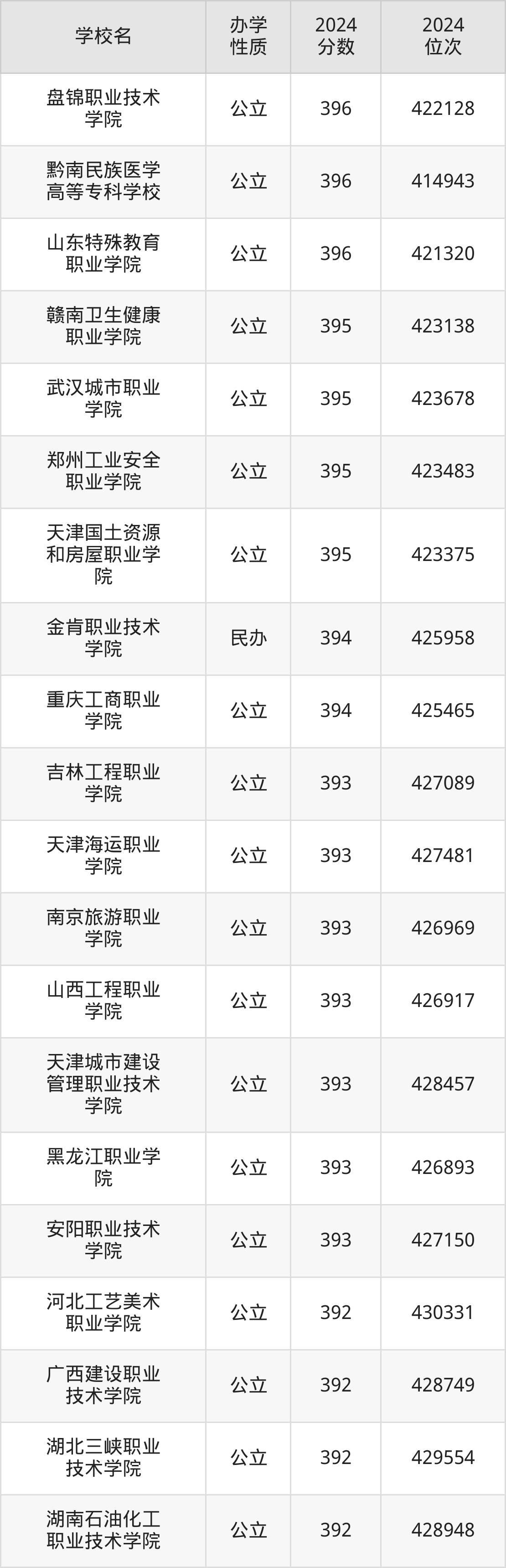 | 山西工程职业 学院 | 393 | 426917 |