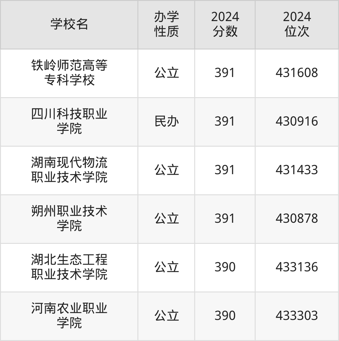 | 四川科技职业 学院 | 391 | 430916 |