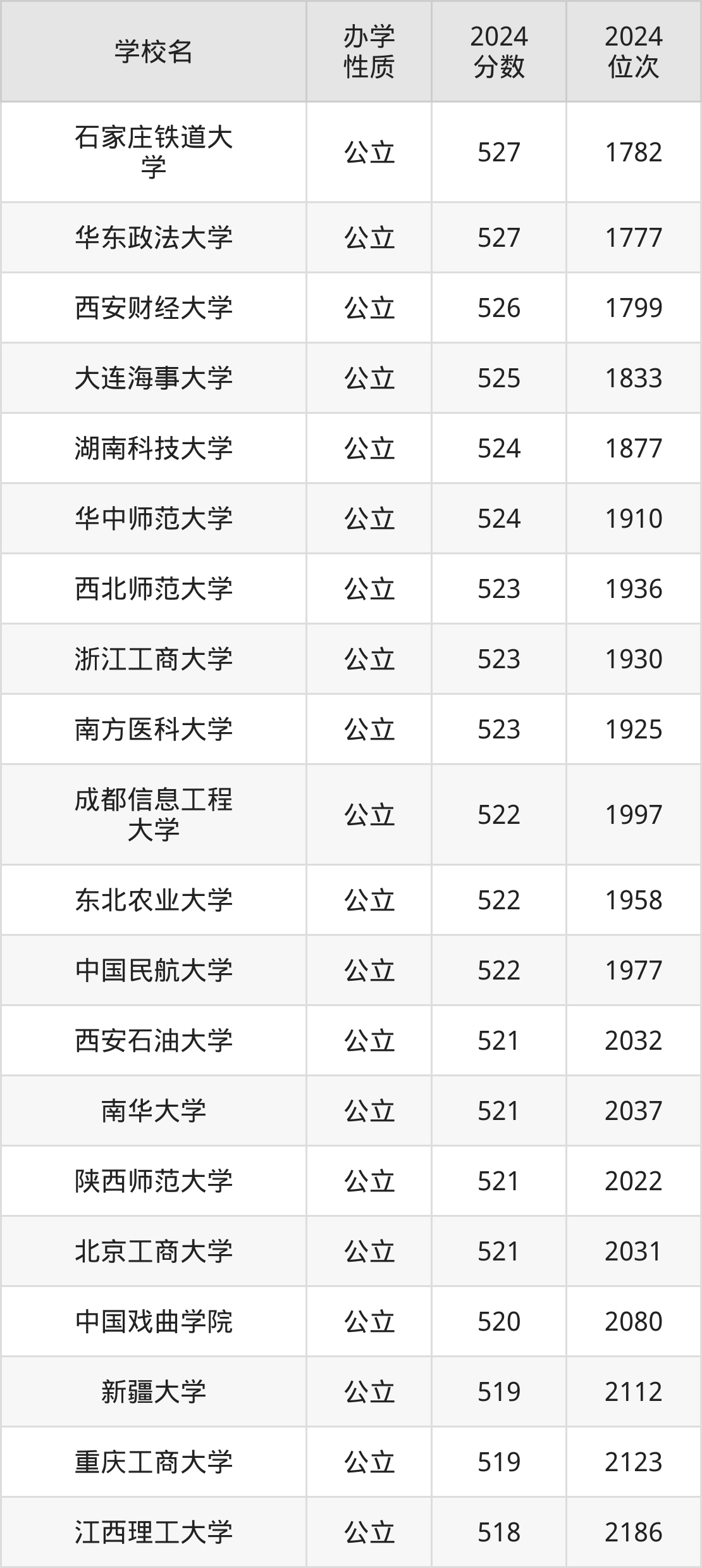 | 石家庄铁道大 学 | 527 | 1782 |