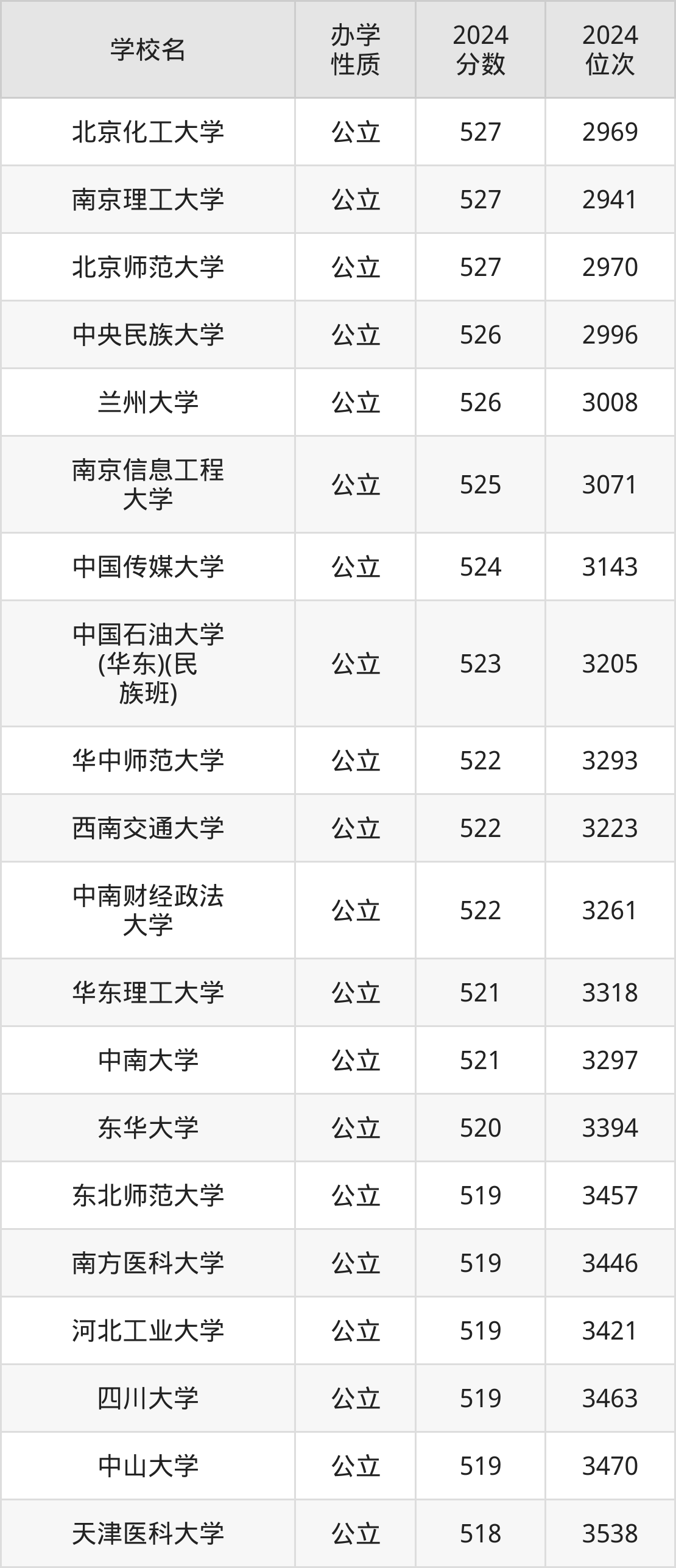 | 学校名 | 2024 分数 | 2024 位次 |