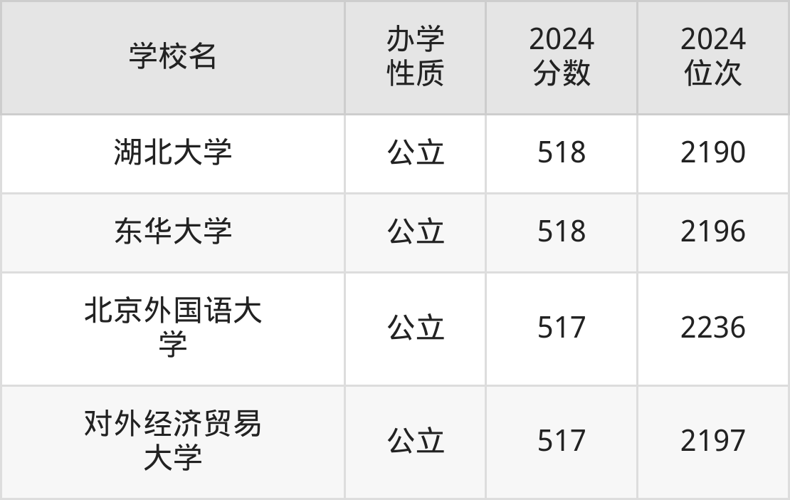 | 湖北大学 | 518 | 2190 |