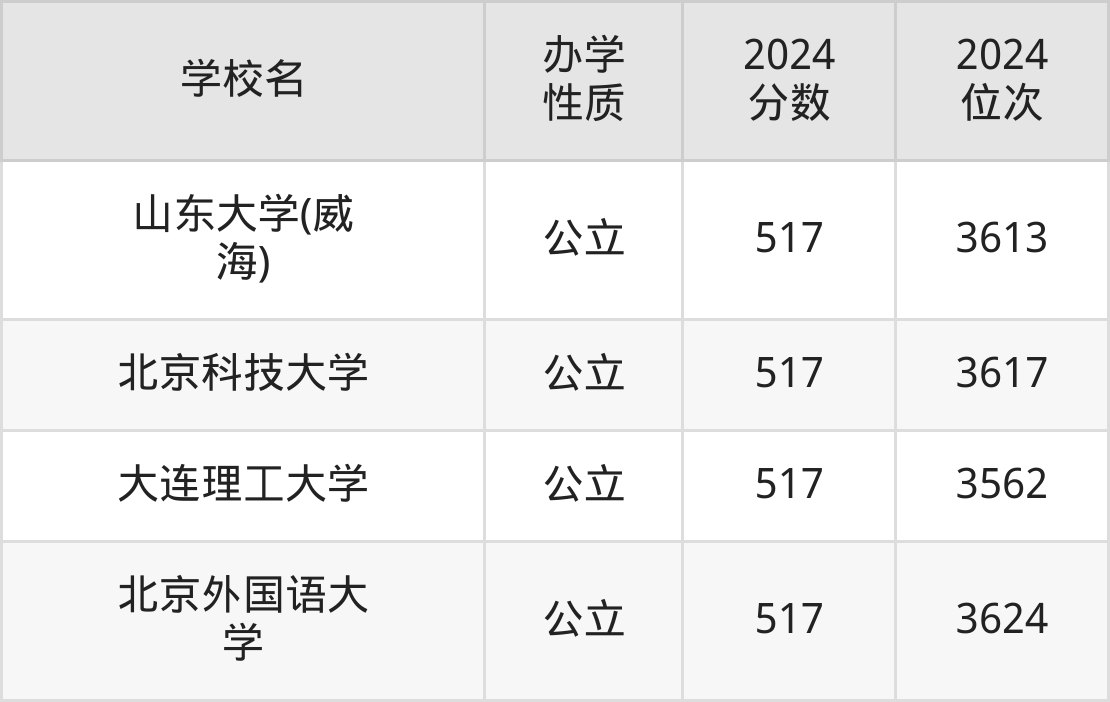 | 山东大学(威 海) | 517 | 3613 |