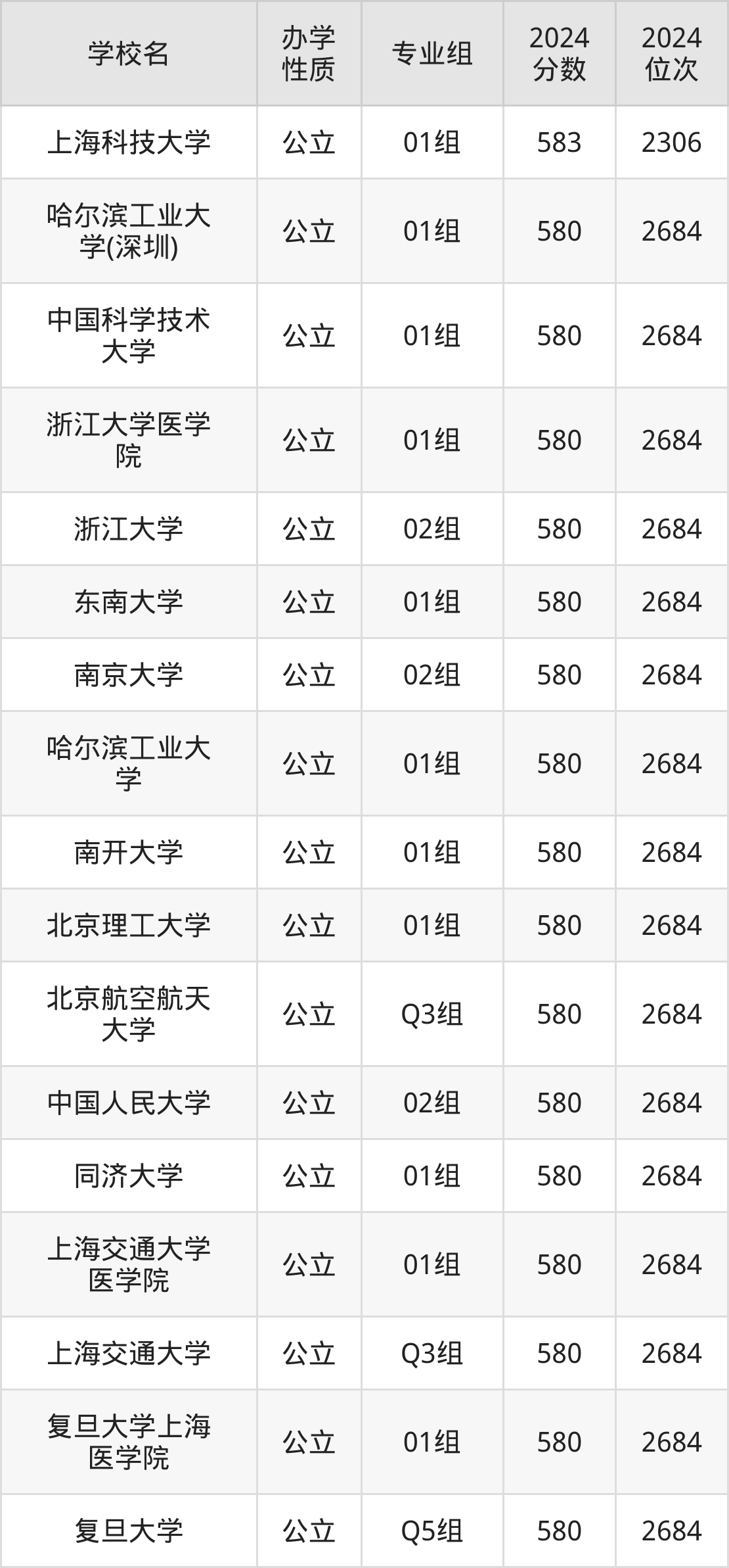 | 学校名 | 专业组 | 2024 分数 | 2024 位次 |
