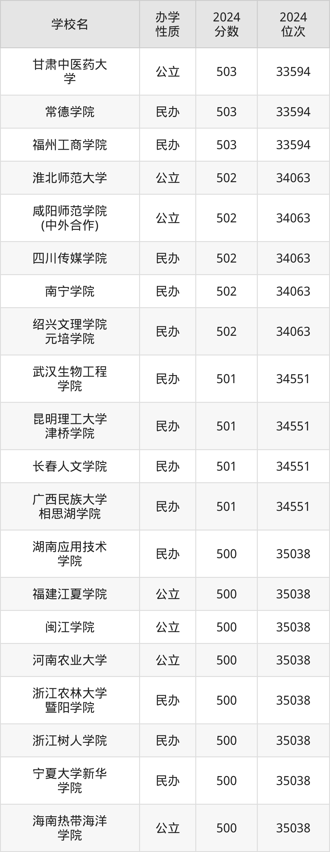 | 浙江农林大学 暨阳学院 | 500 | 35038 |