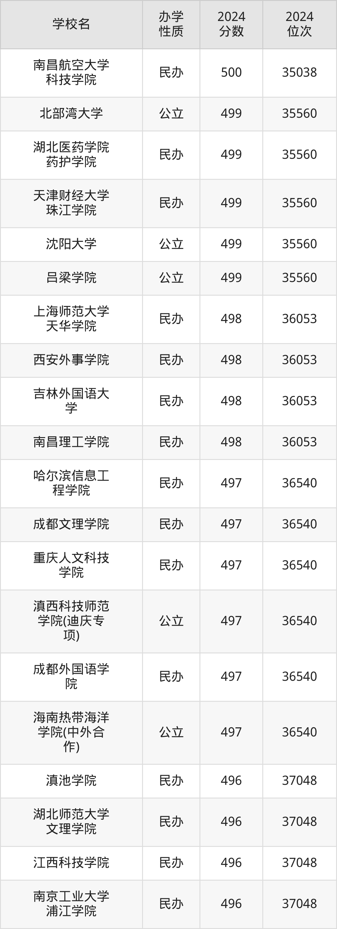 | 海南热带海洋 学院(中外合 作) | 497 | 36540 |