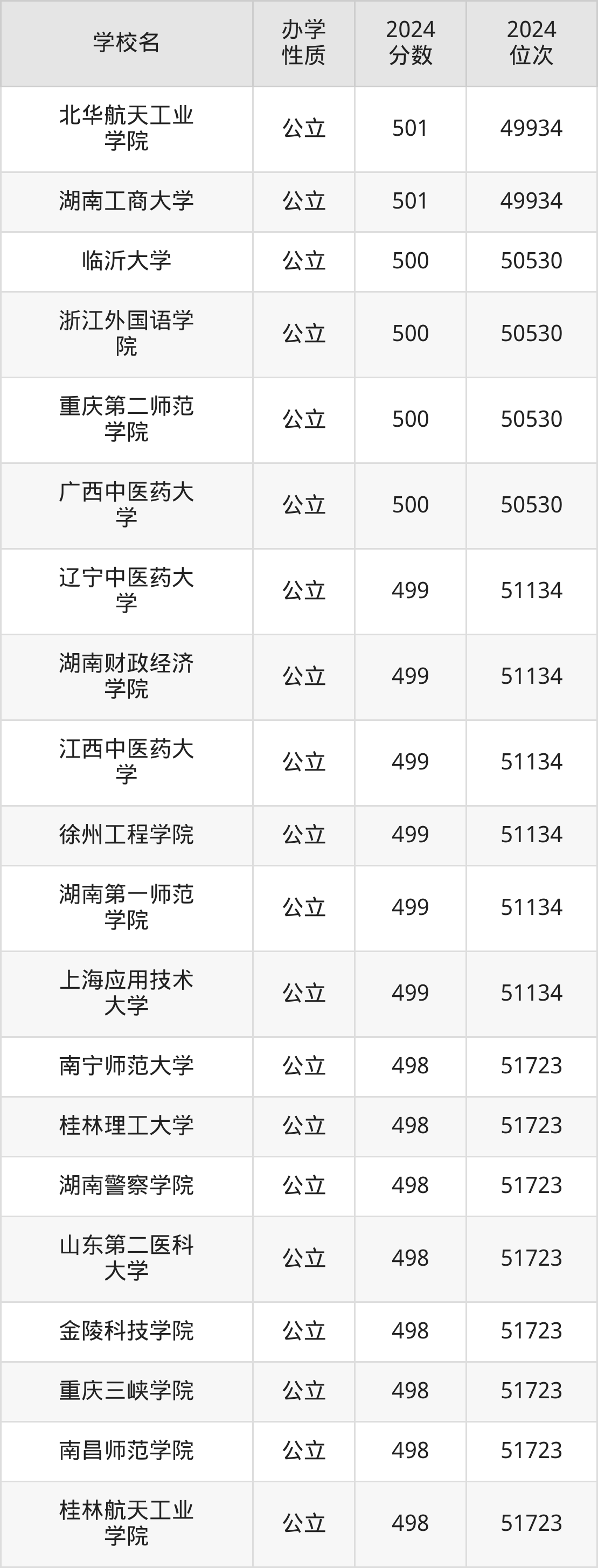 | 中南林业科技 大学涉外学院 | 493 | 38505 |