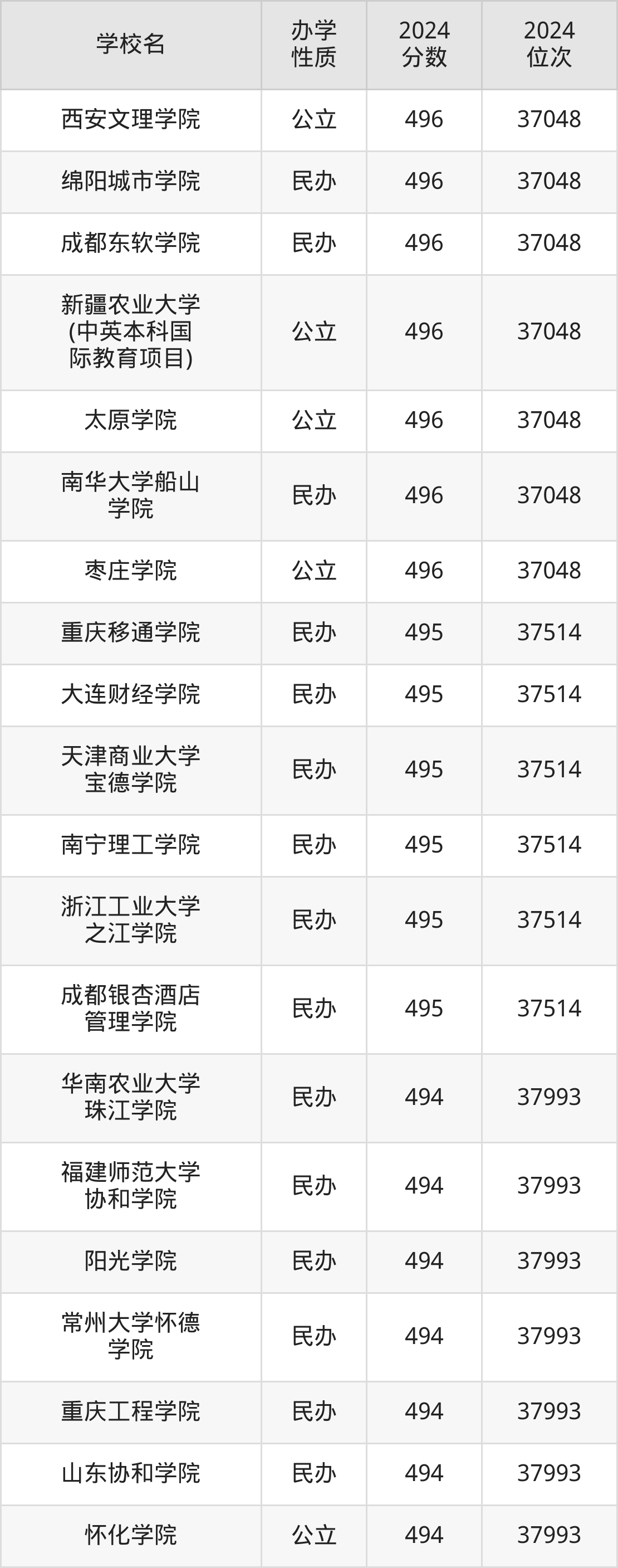 | 新疆农业大学 (中英本科国 际教育项目) | 496 | 37048 |