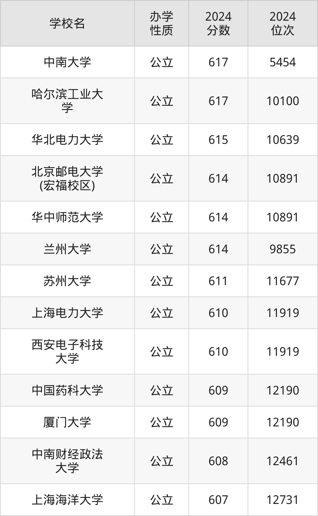 | 哈尔滨工业大 学 | 617 | 10100 |