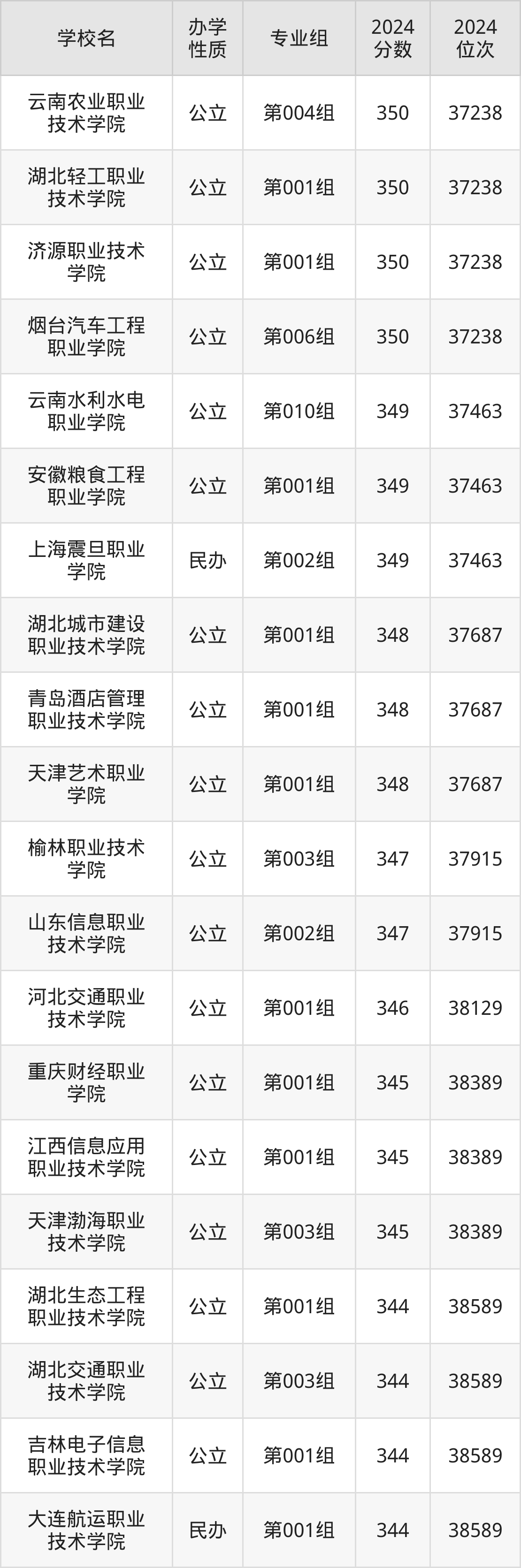 | 湖北水利水电 职业技术学院 | 第002组 | 343 | 93164 |