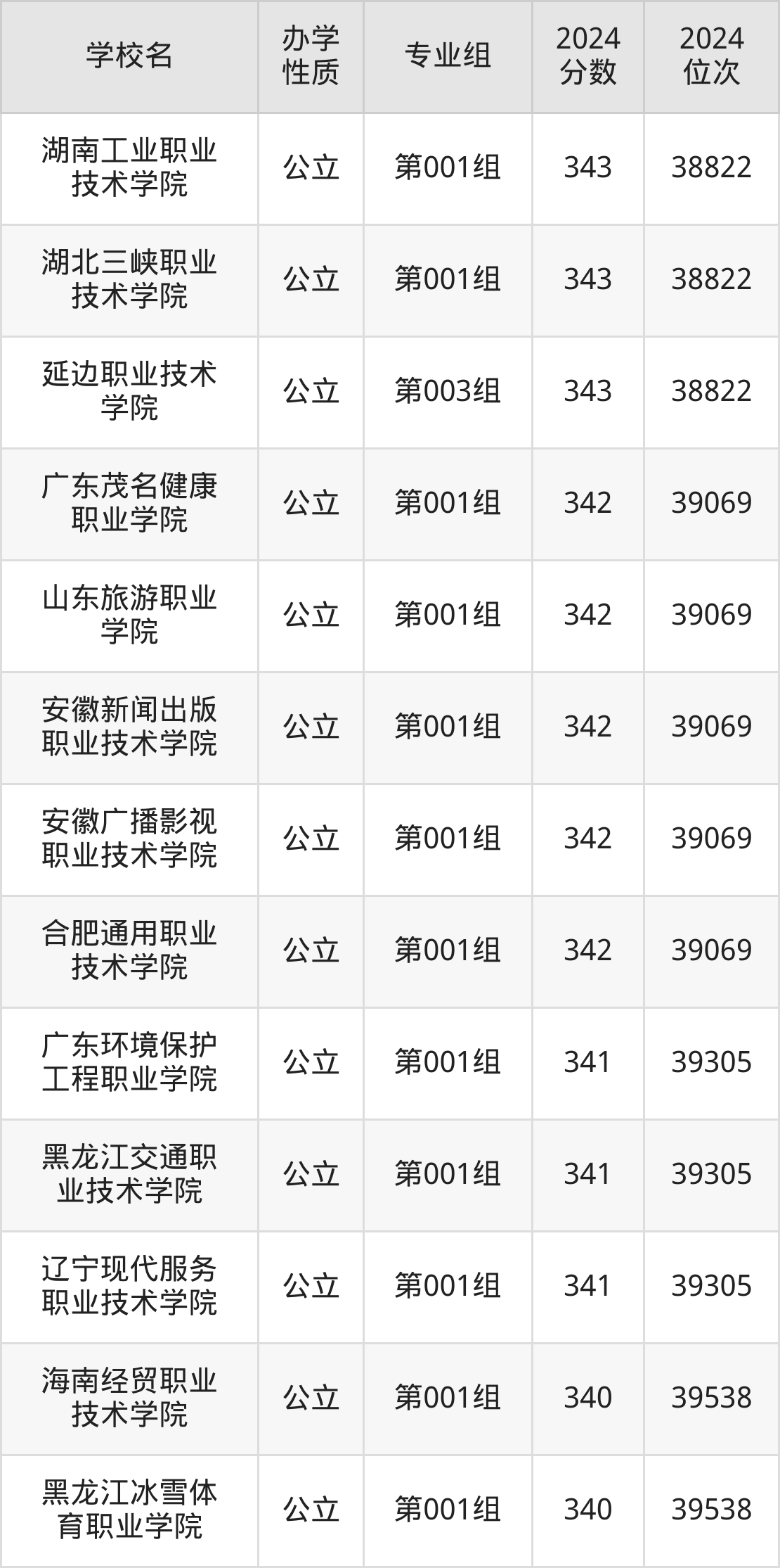 | 合肥通用职业 技术学院 | 第001组 | 342 | 39069 |