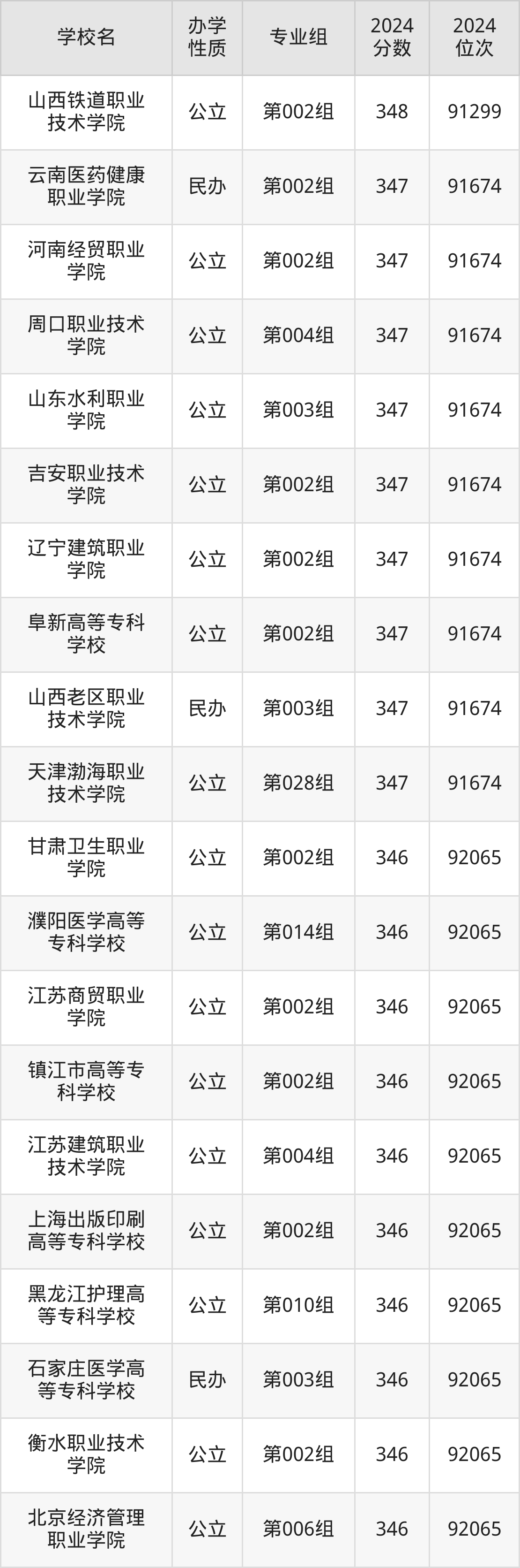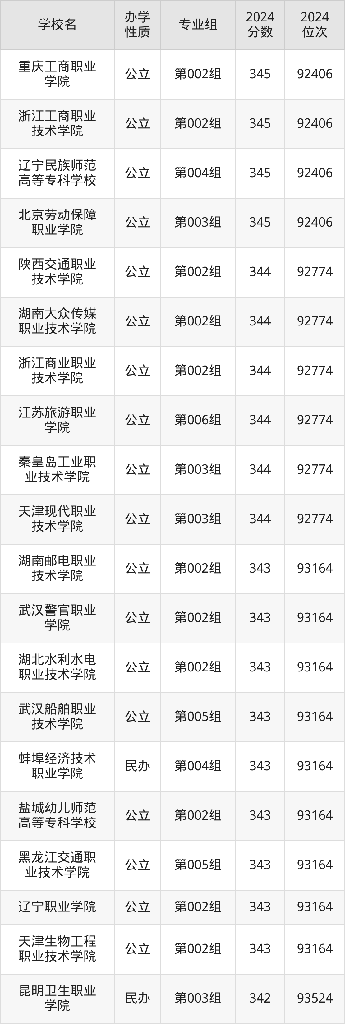 | 北京经济管理 职业学院 | 第008组 | 342 | 93524 |