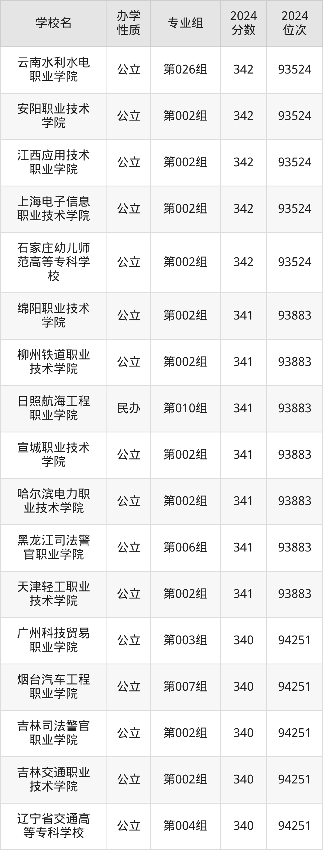 | 吉林司法警官 职业学院 | 第002组 | 340 | 94251 |