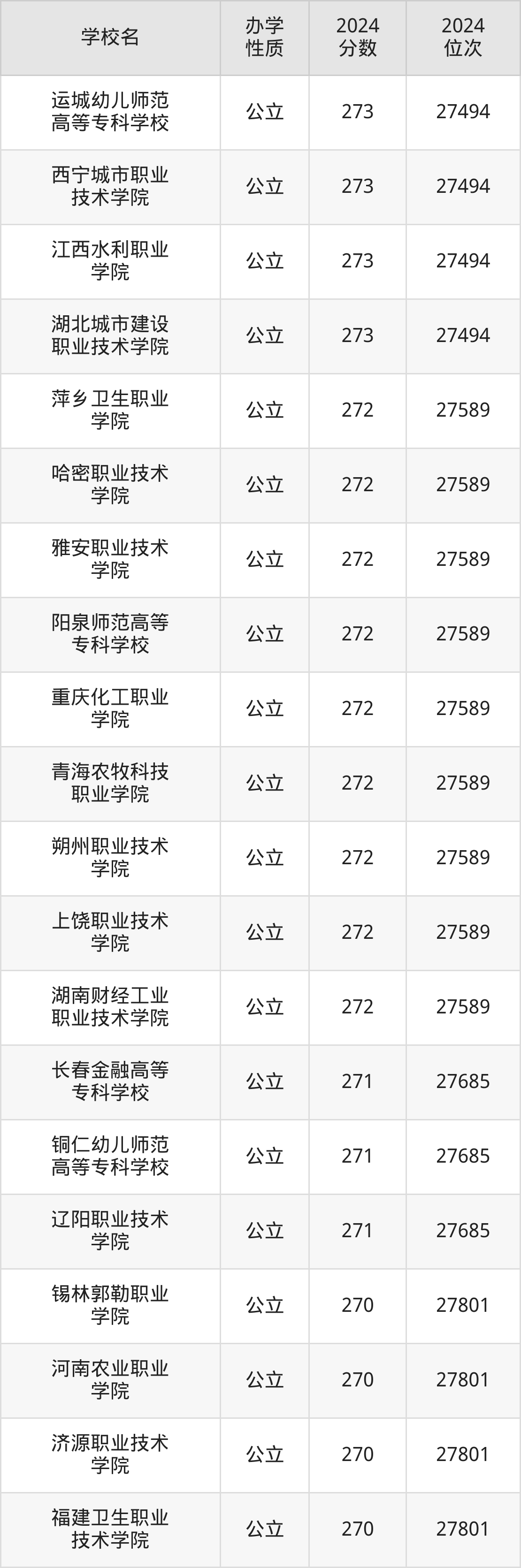 | 萍乡卫生职业 学院 | 272 | 27589 |