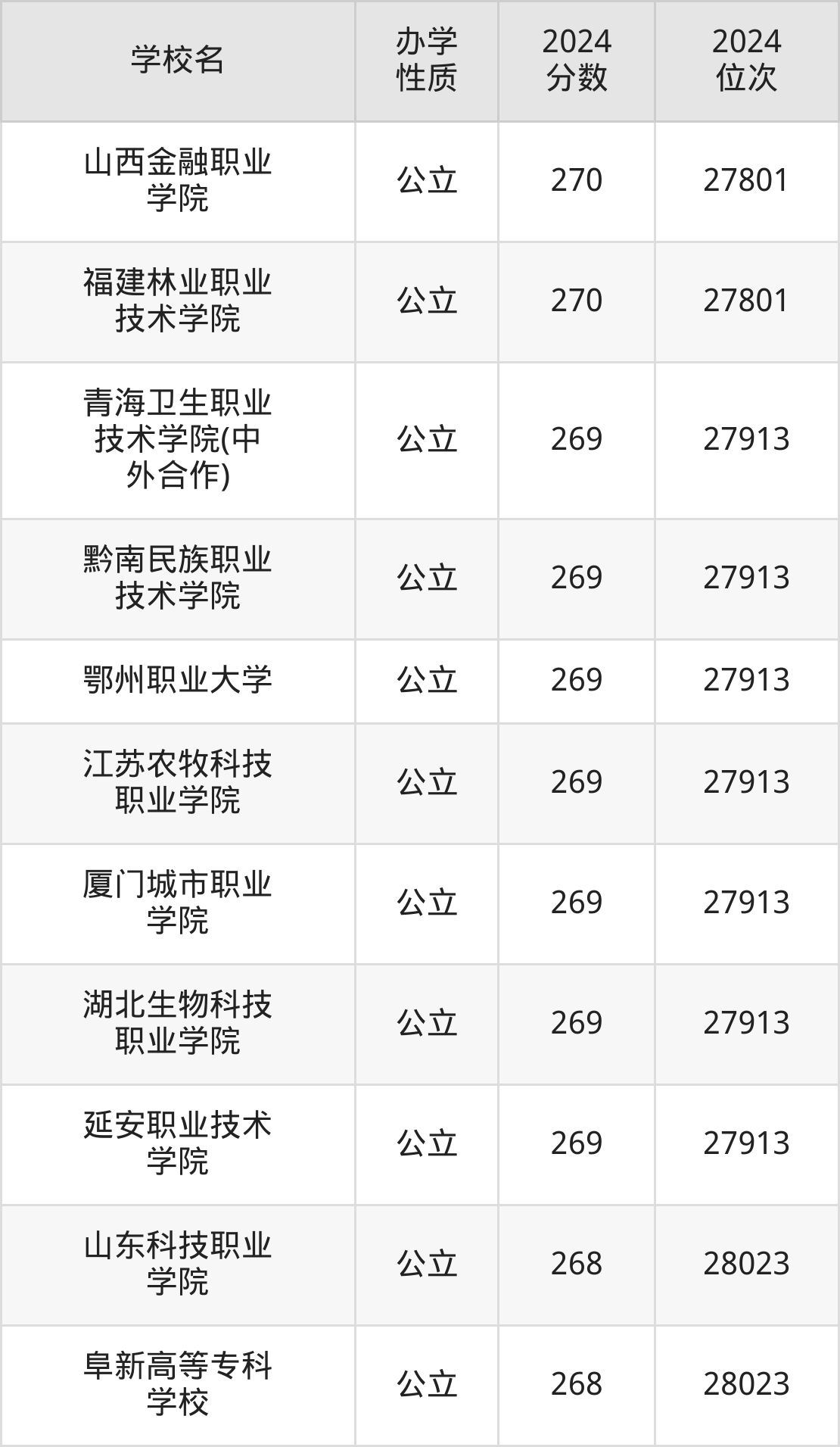 青海省273分能上专科大学,比如贵州盛华职业学院、铜川职业技术学院、商洛职业技术学院等,更多名单可以在下文了解。