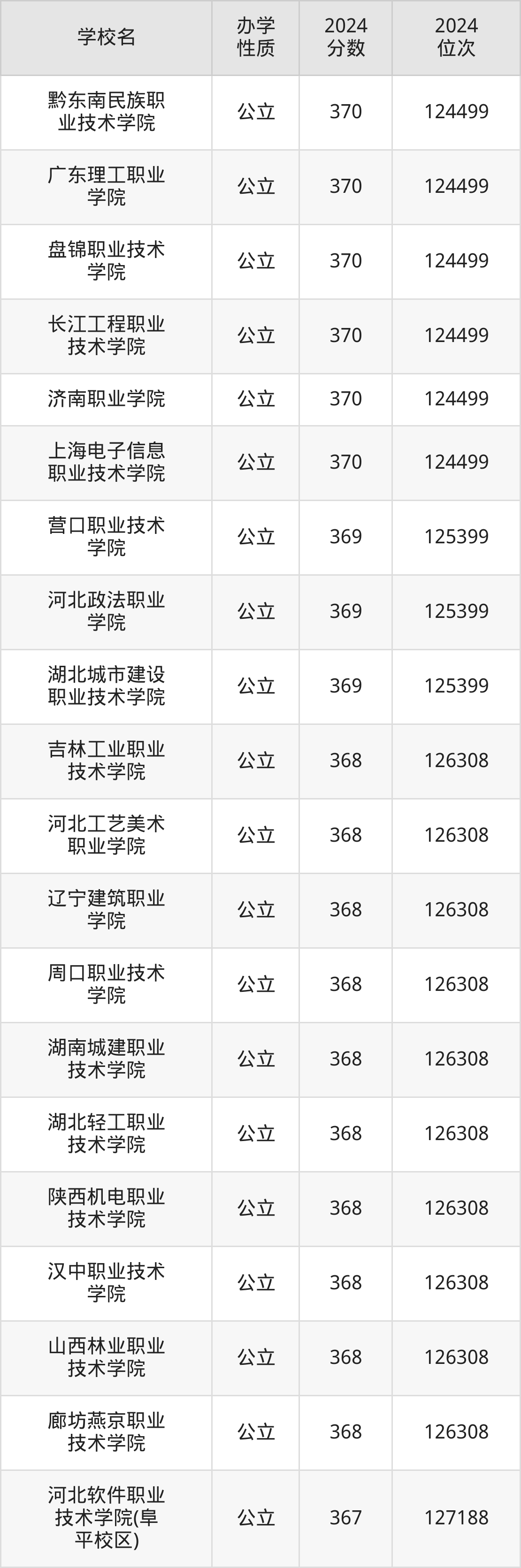 | 盘锦职业技术 学院 | 370 | 124499 |